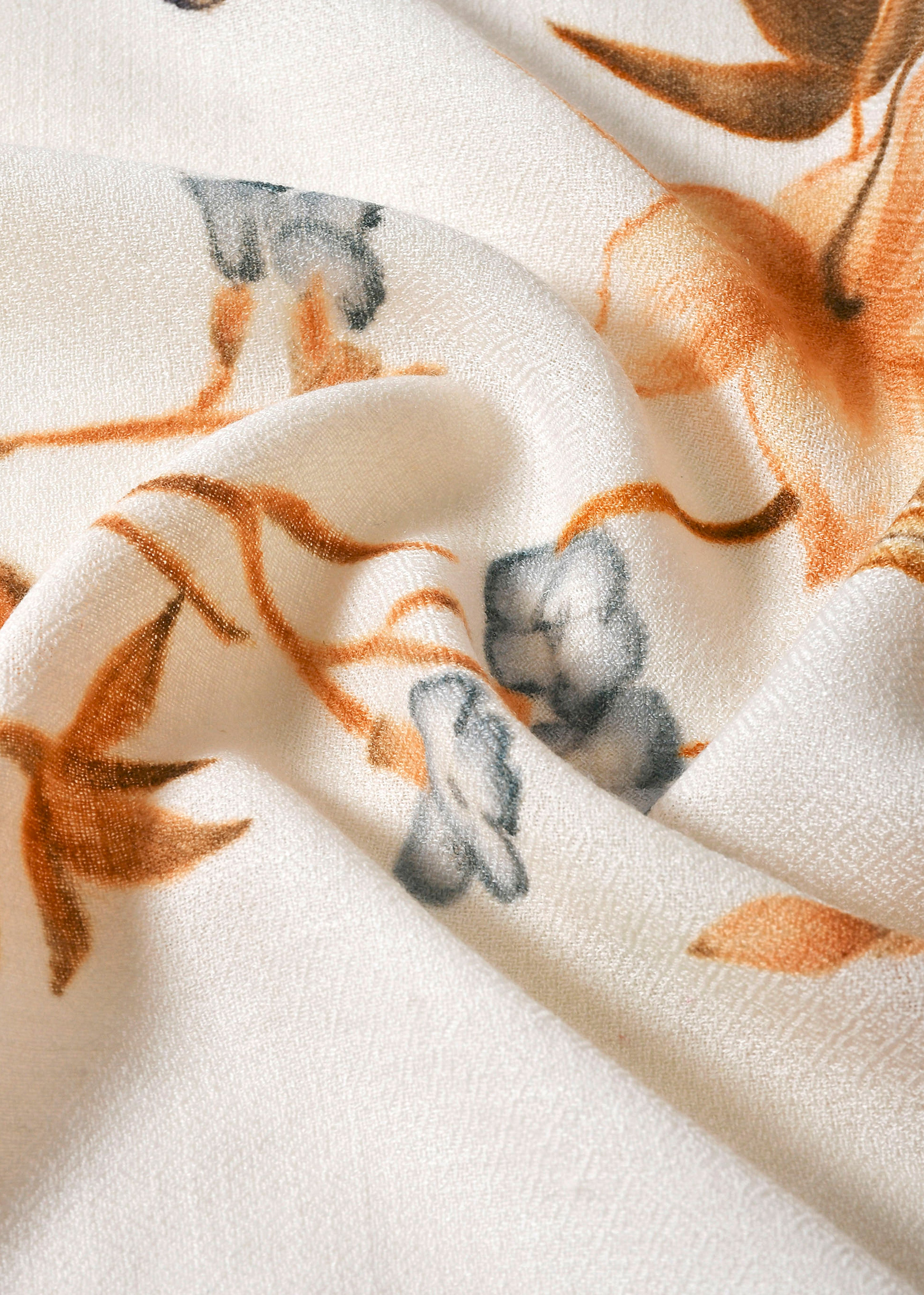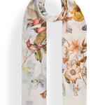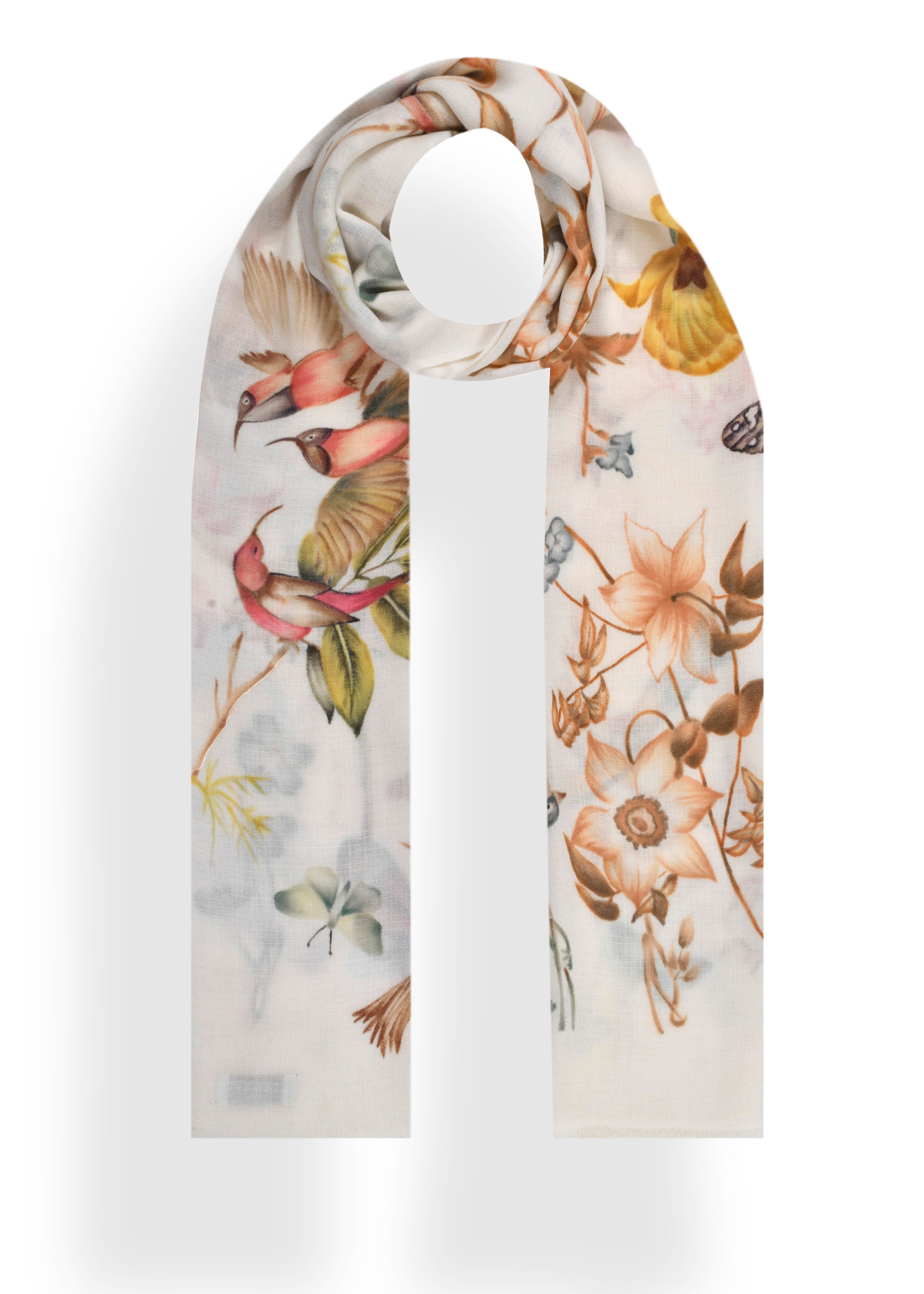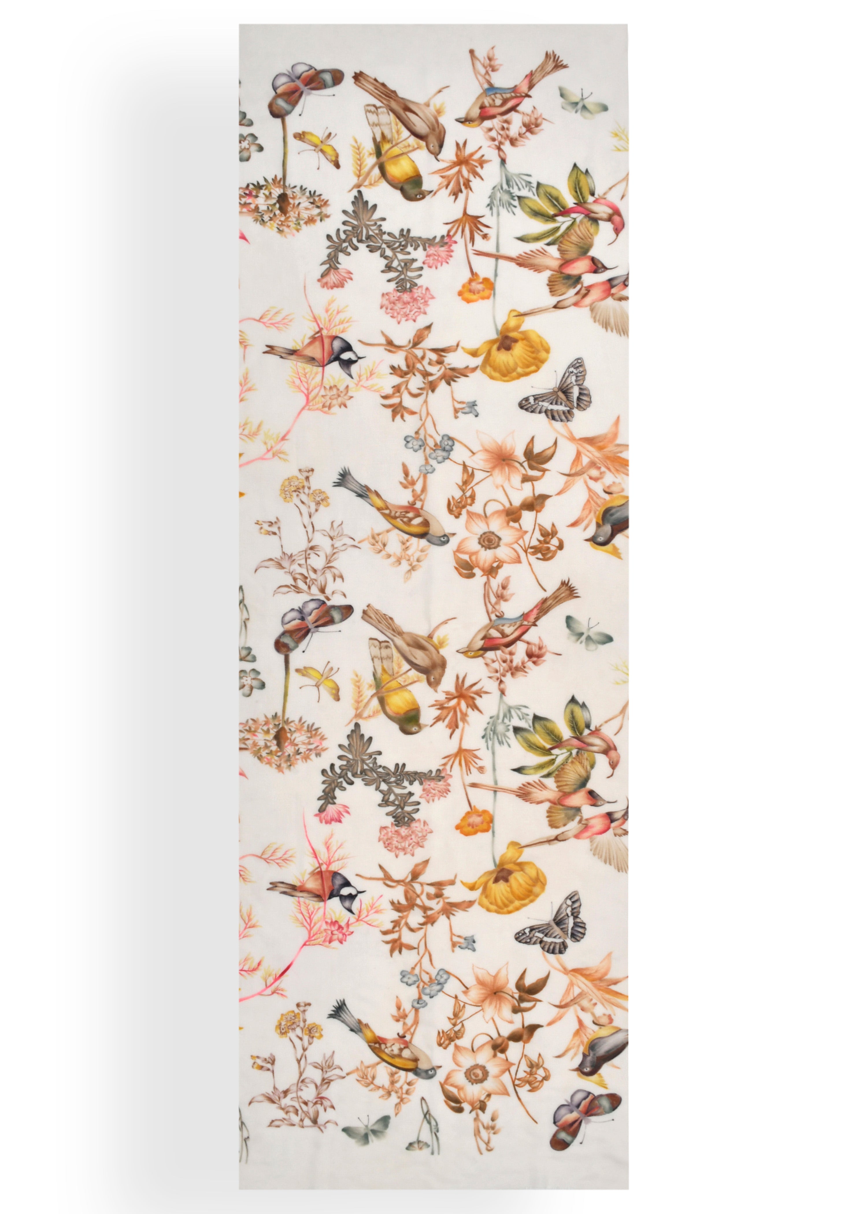 Hand painted butterflies and birds on cannoli cream cashmere wool wrap.