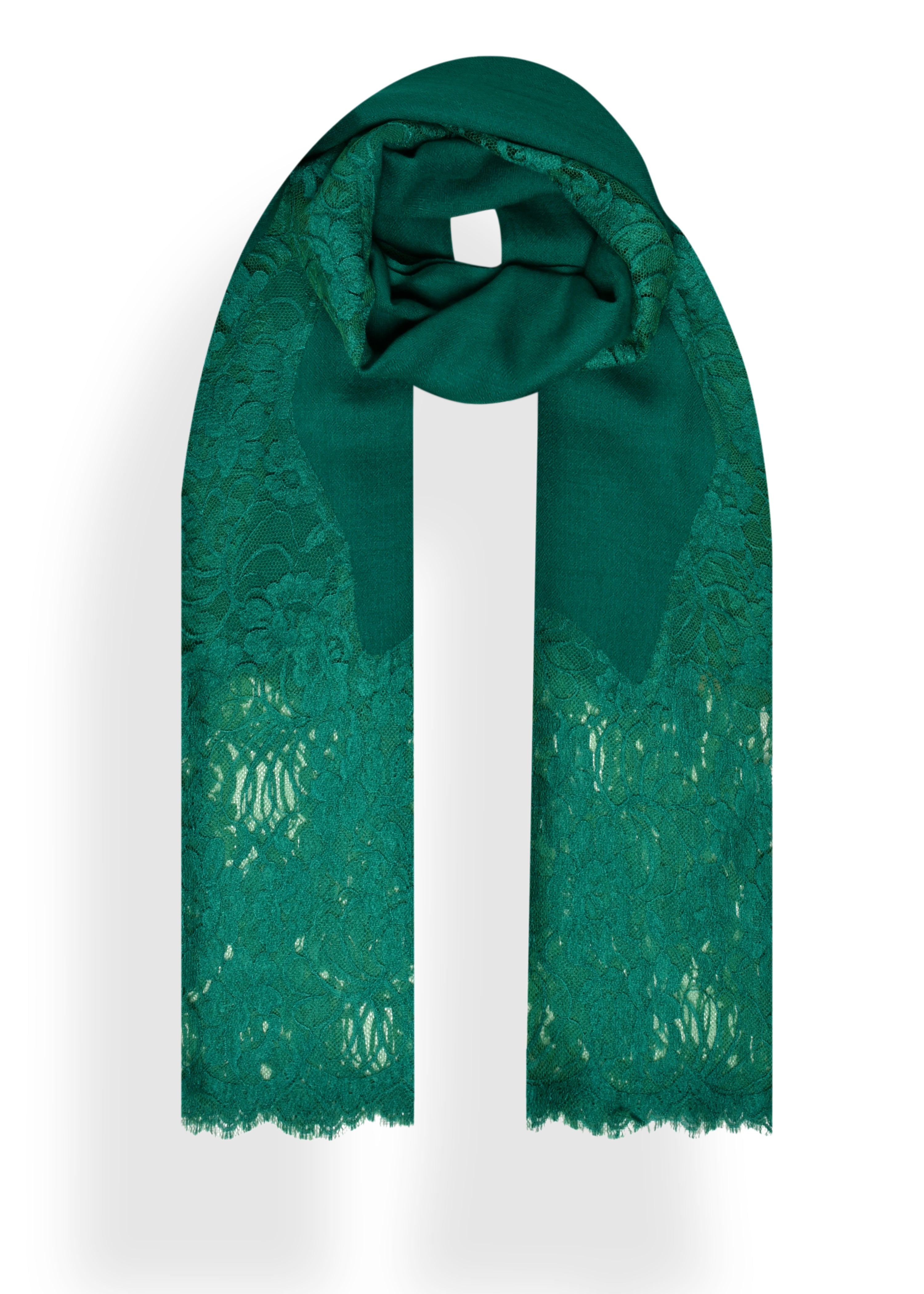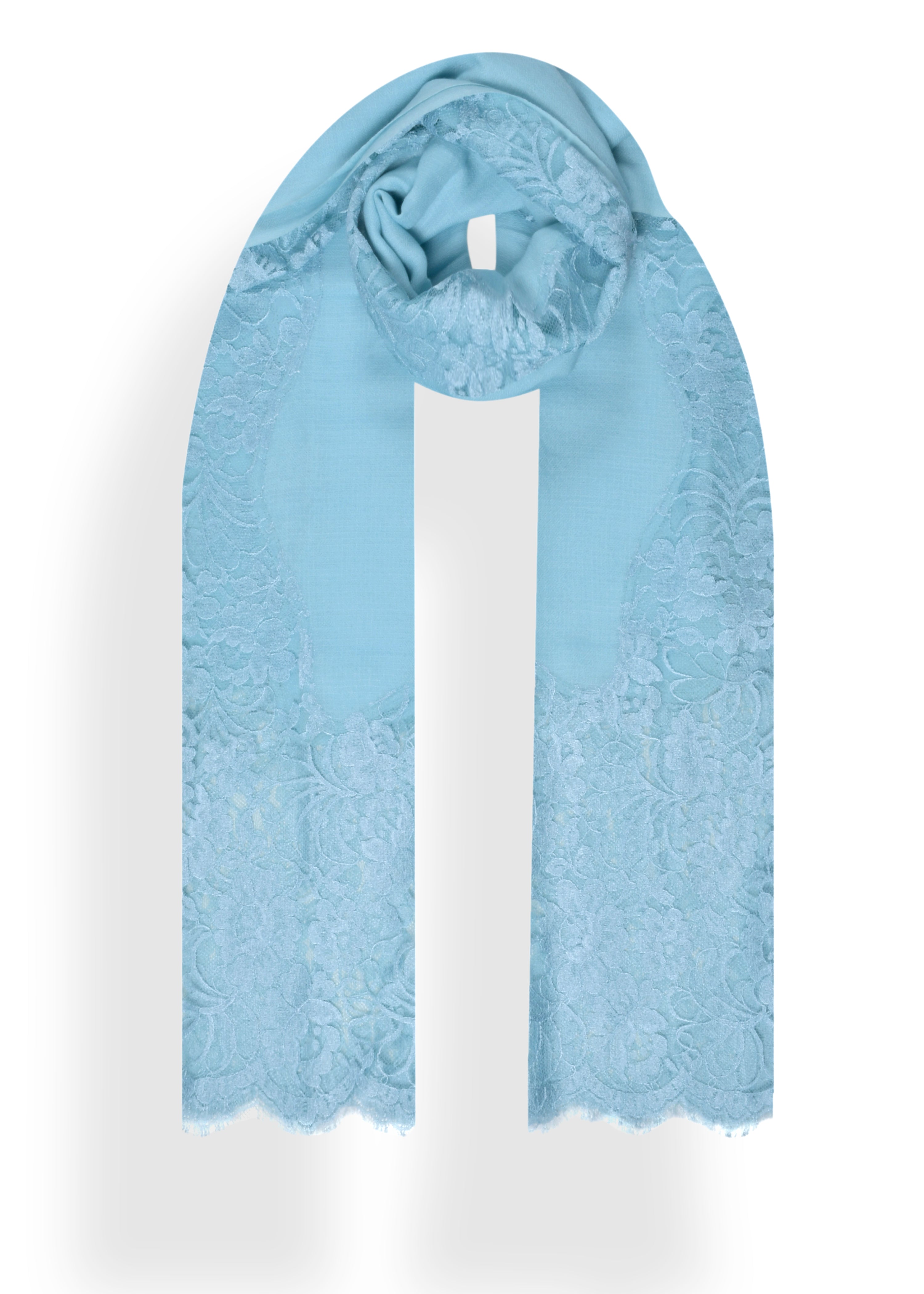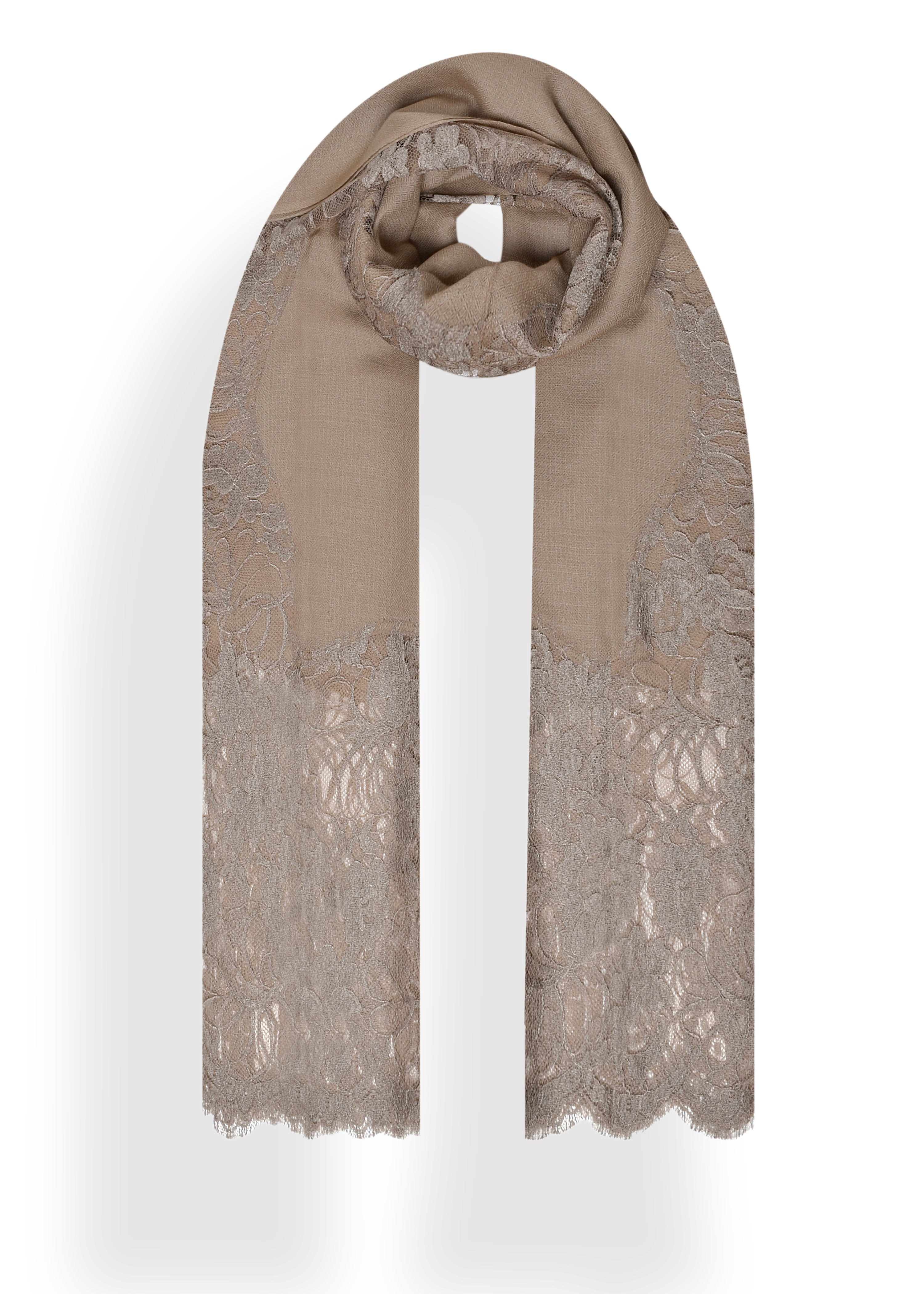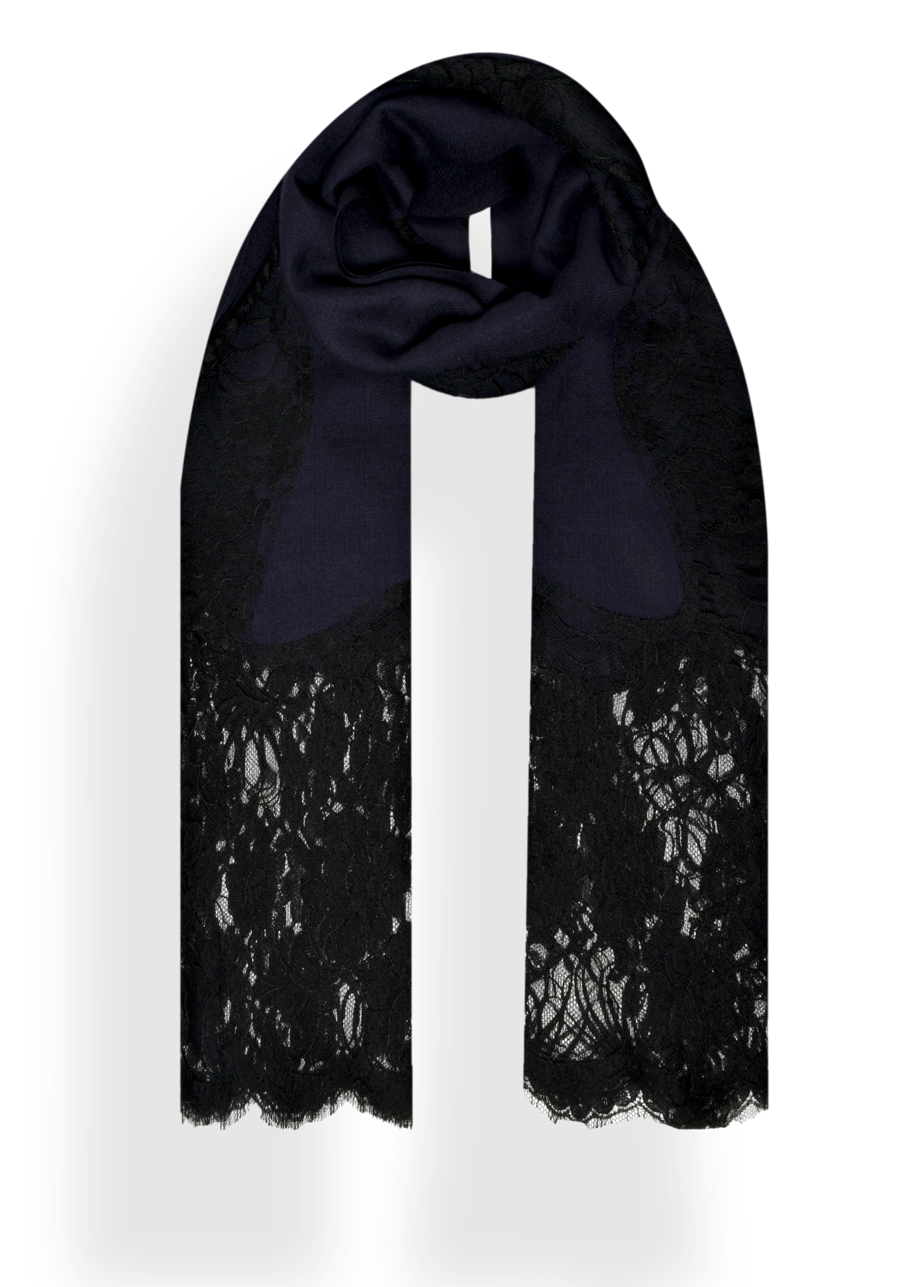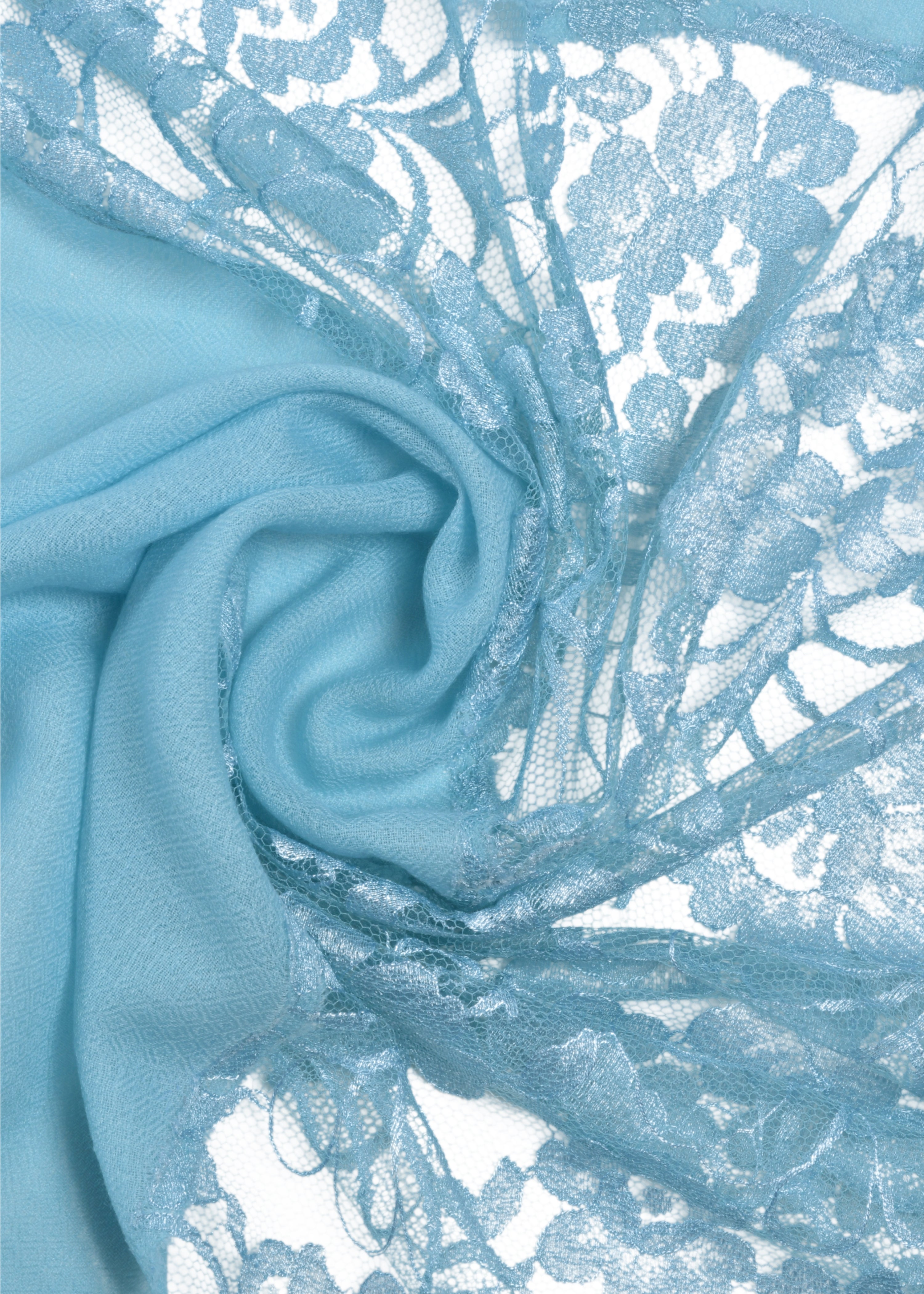 A Janavi Original, a fine Chantilly lace cloud emerges as if from a genies lamp, making a mystic path across finely spun cashmere.