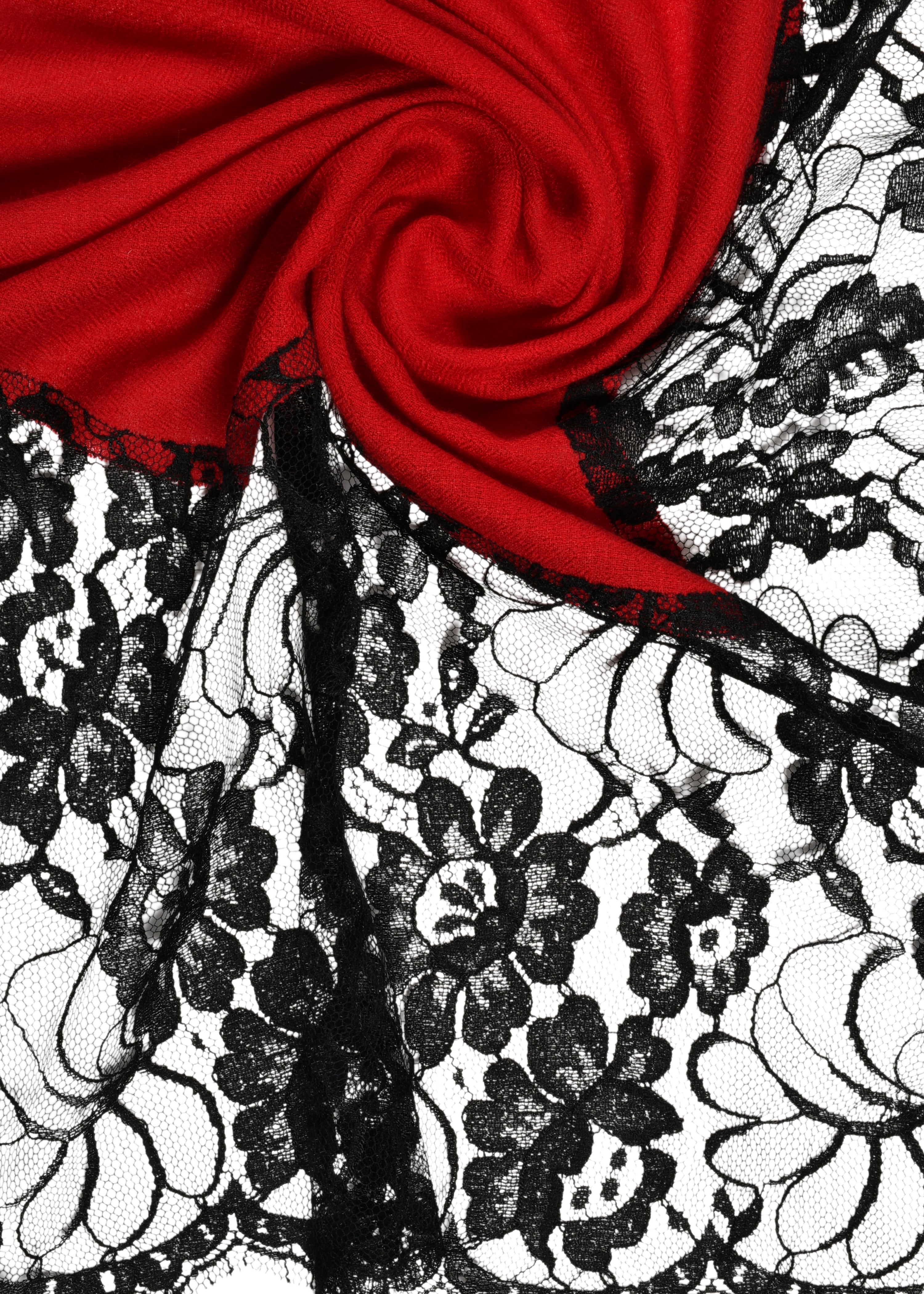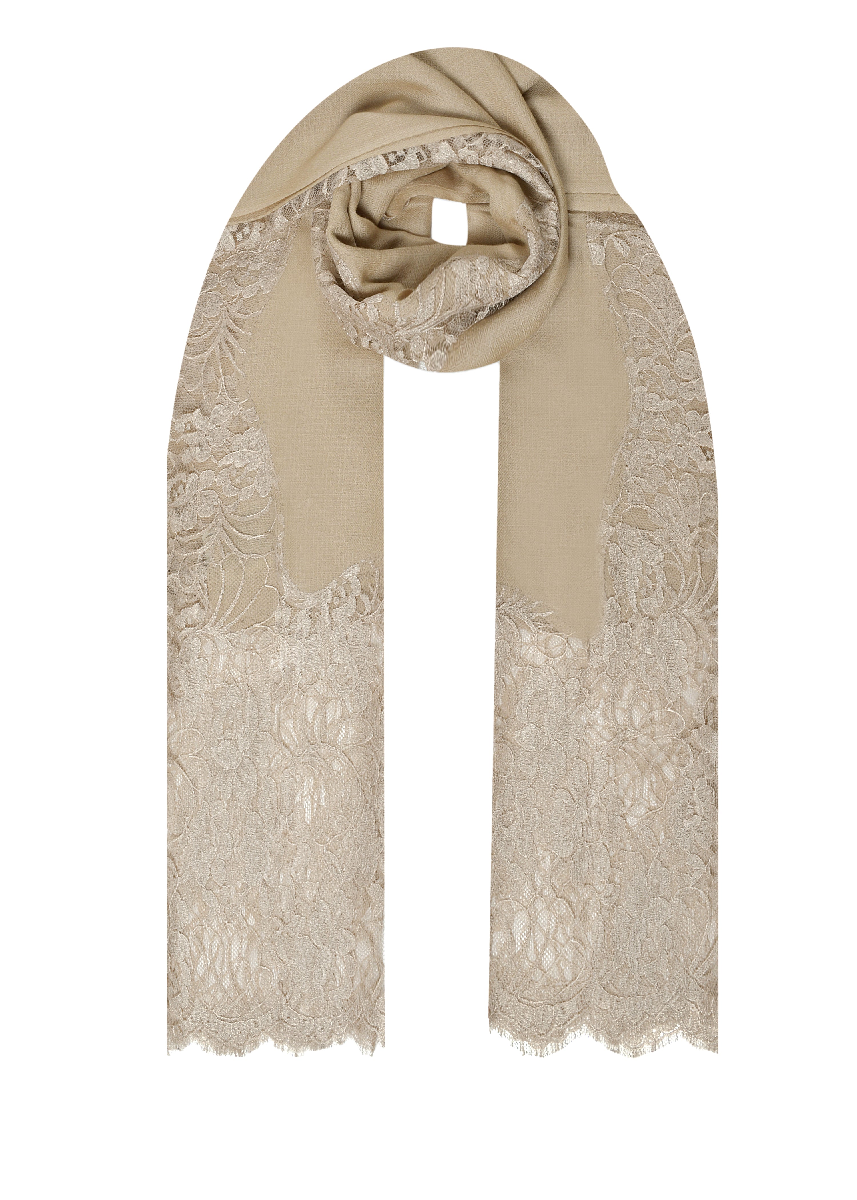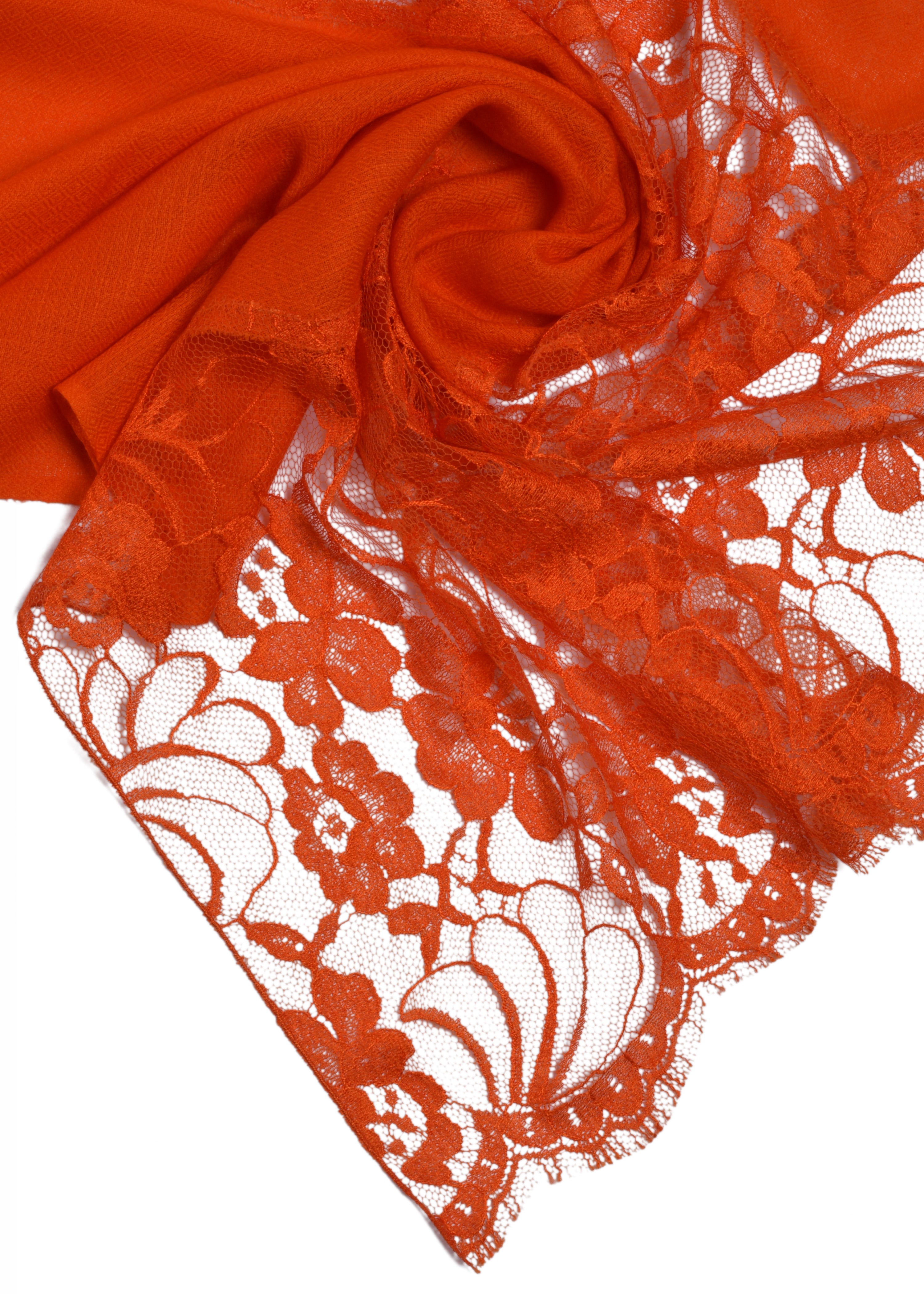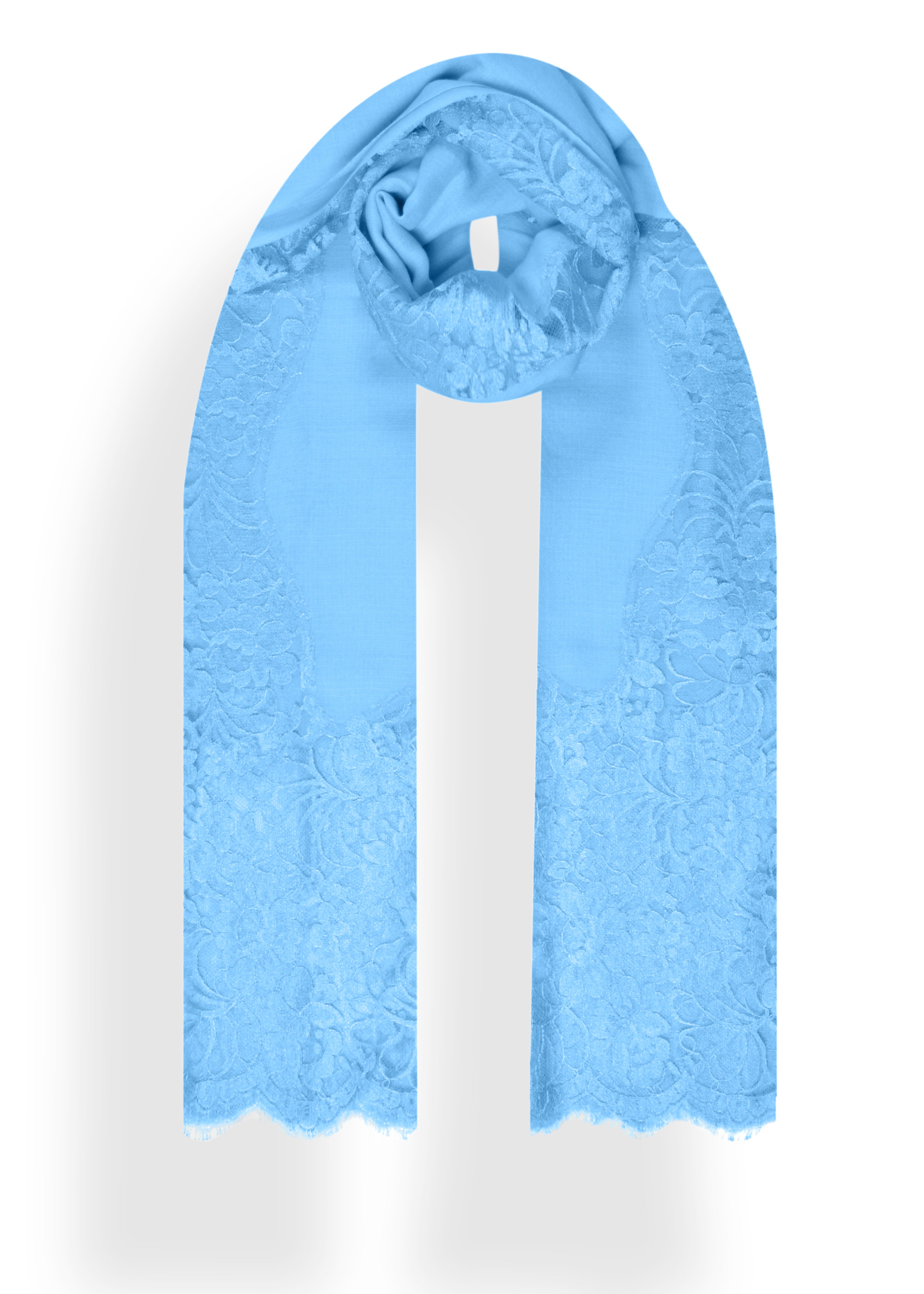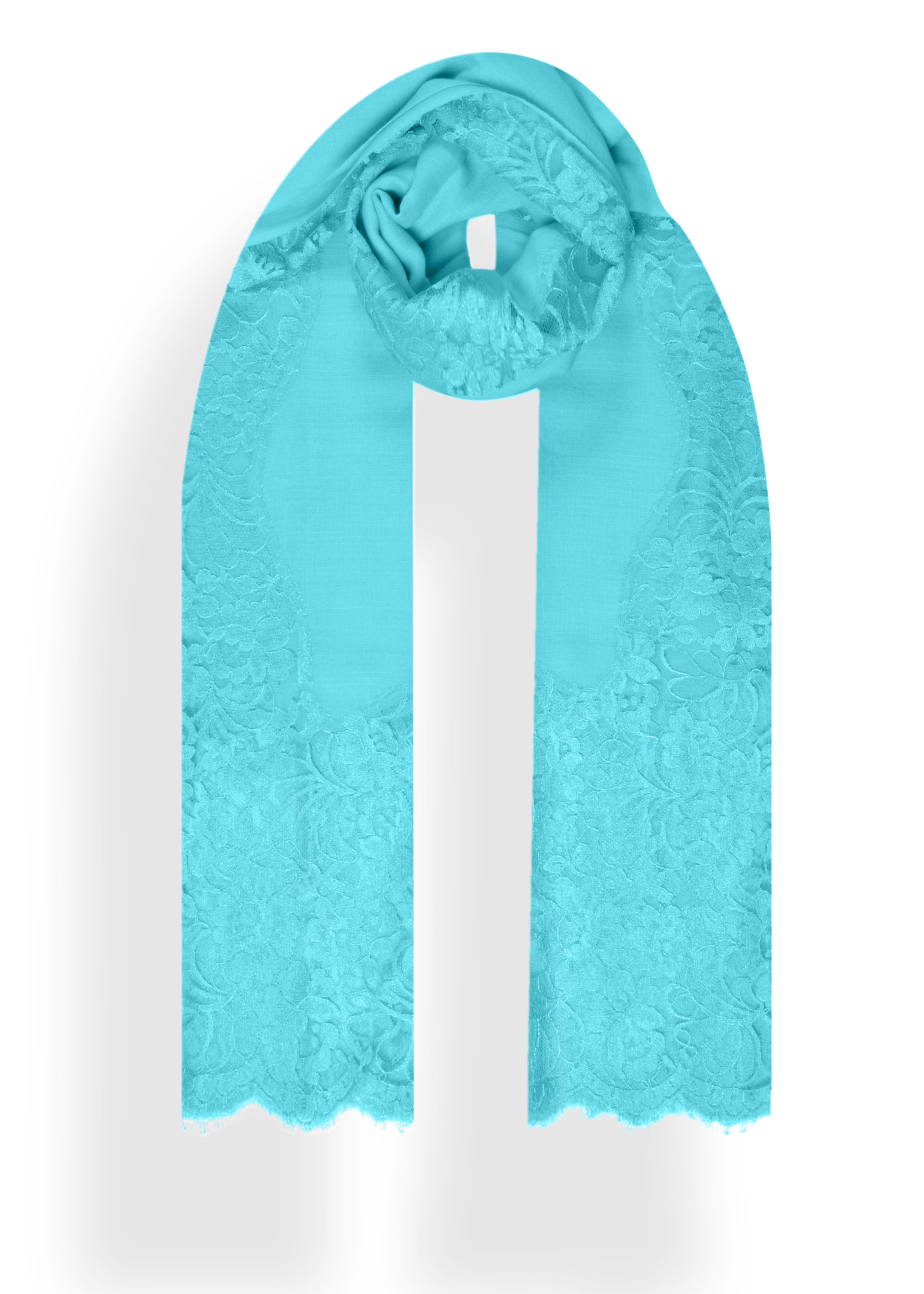 A Janavi Original, a fine Chantilly lace cloud emerges as if from a genies lamp, making a mystic path across finely spun cashmere.