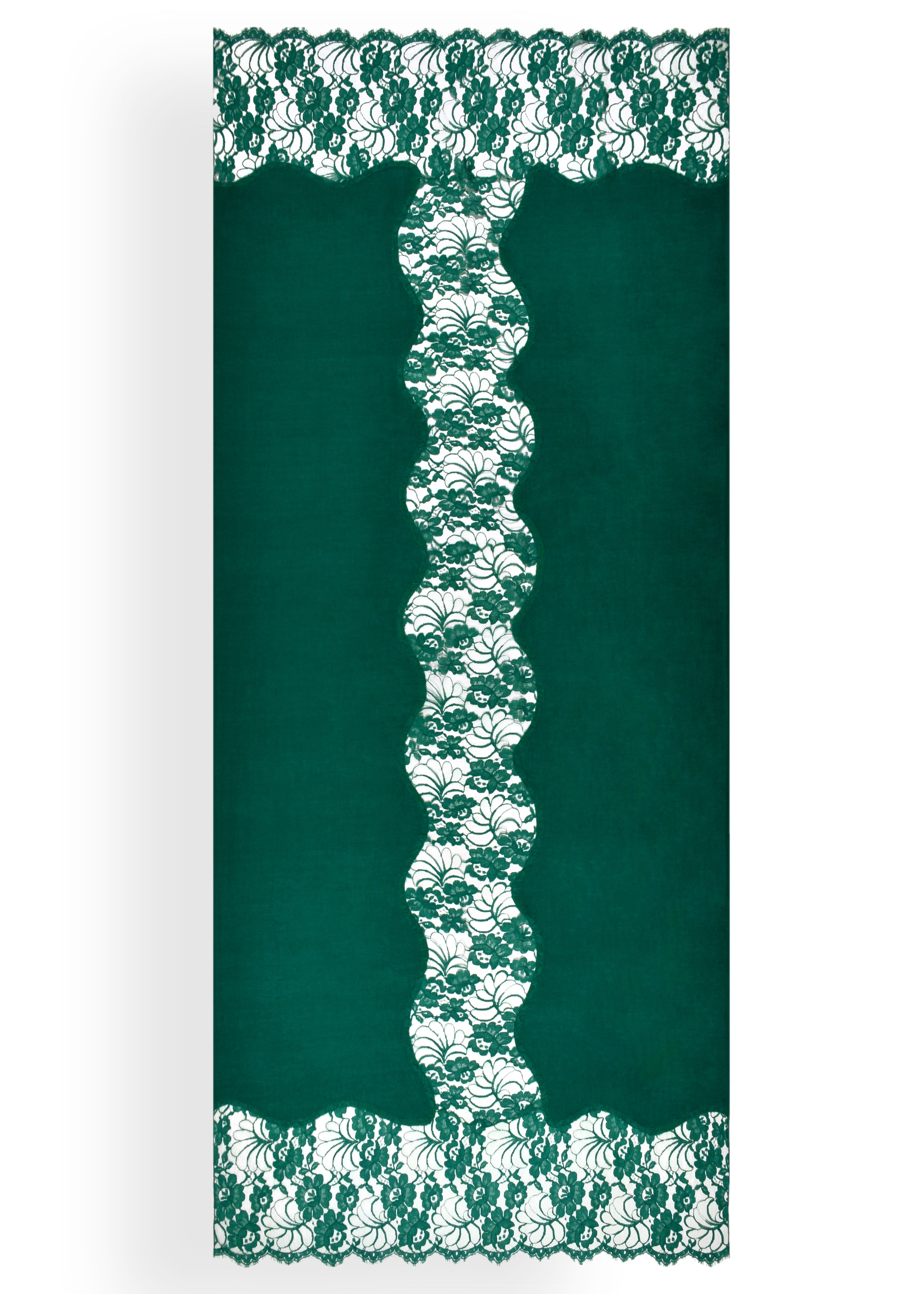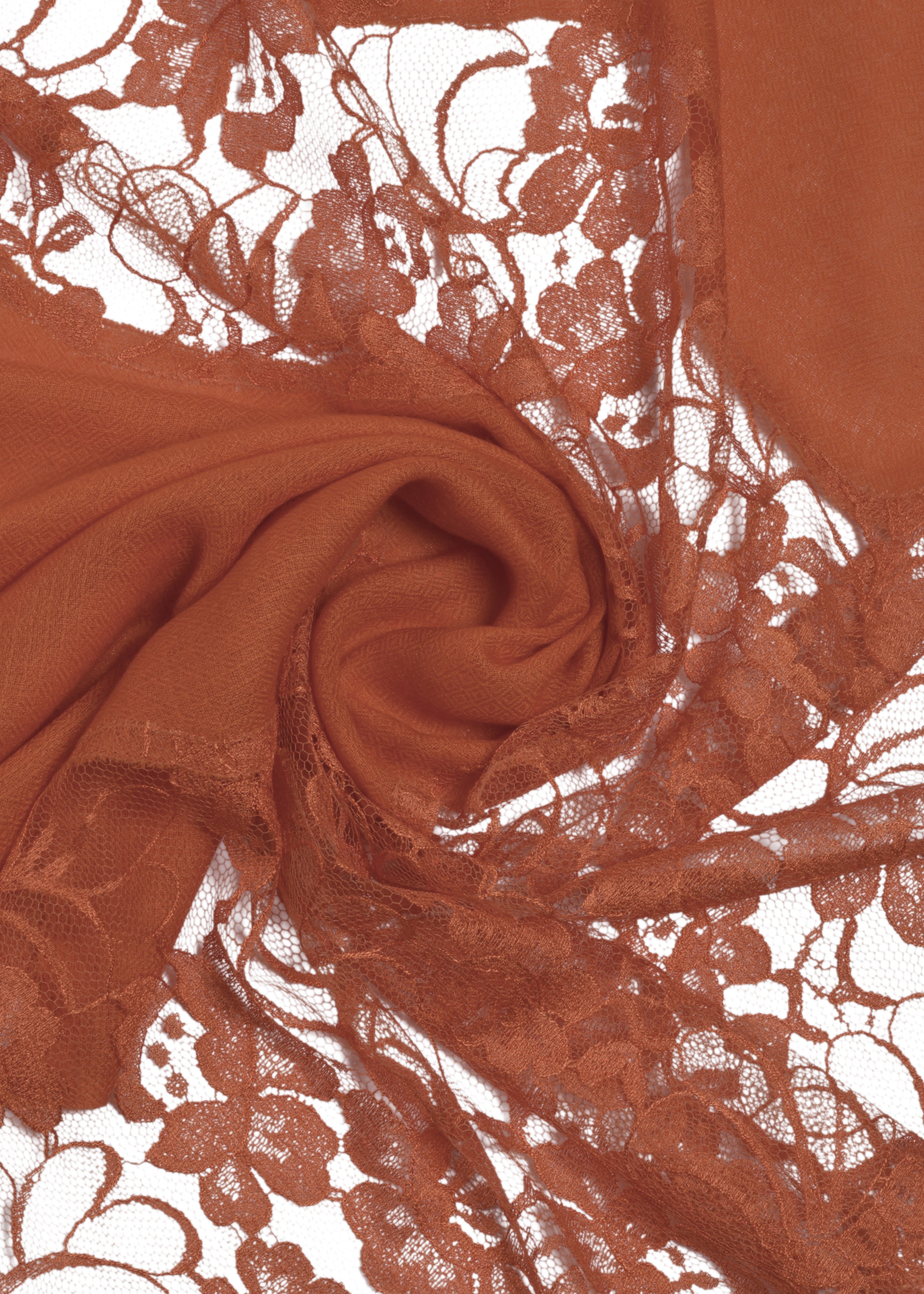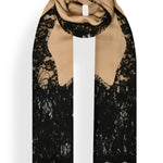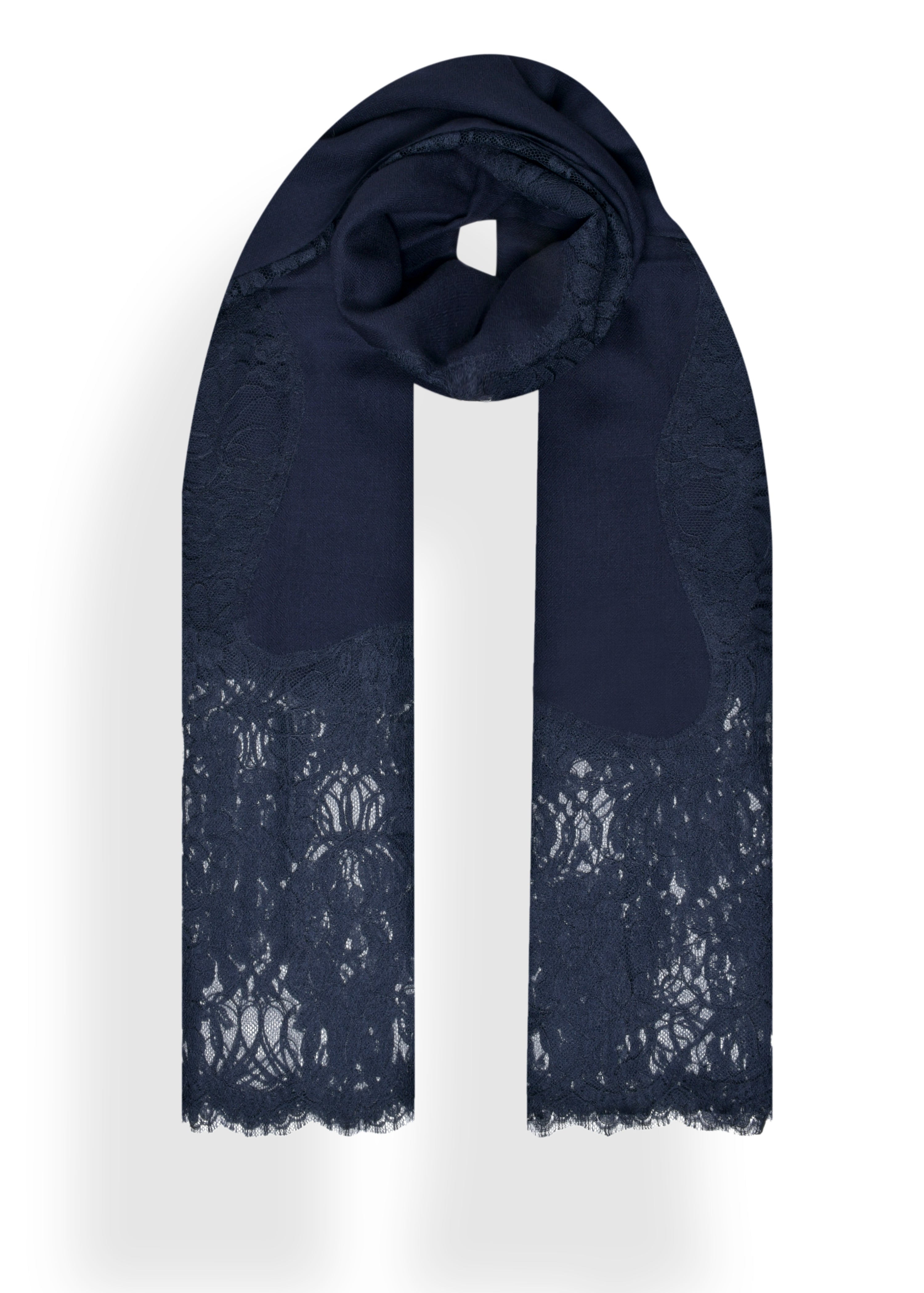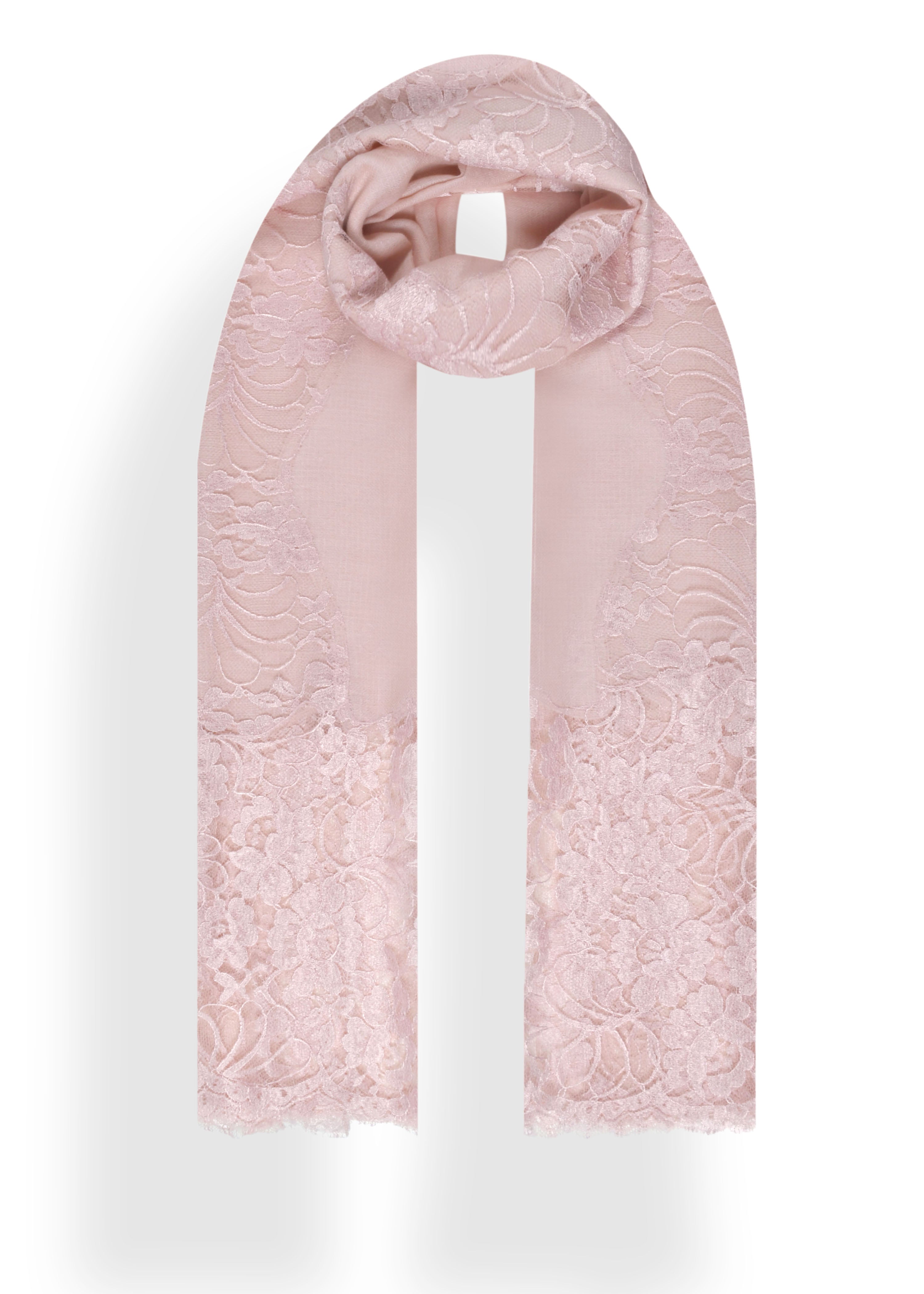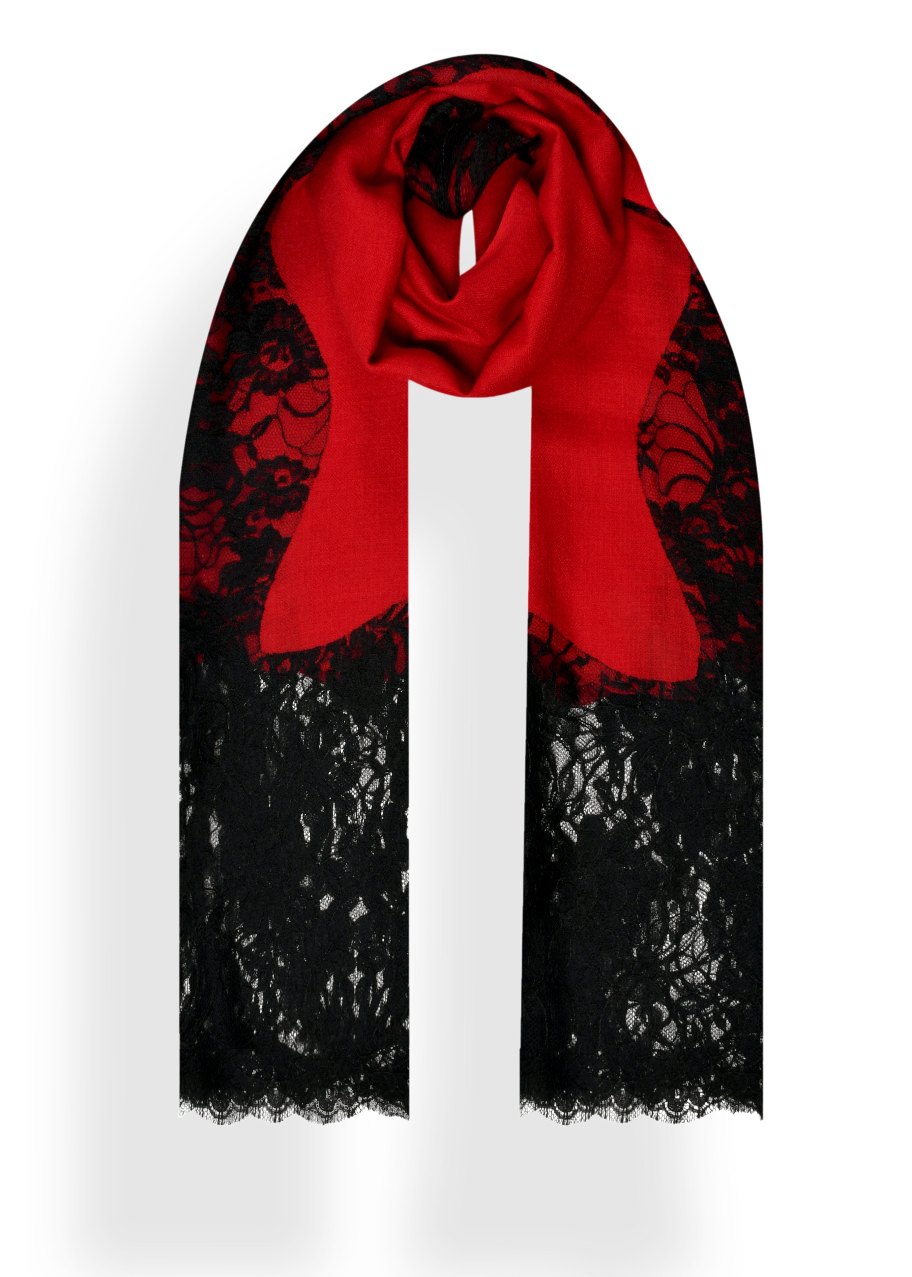 A Janavi Original, a fine Chantilly lace cloud emerges as if from a genies lamp, making a mystic path across finely spun cashmere.