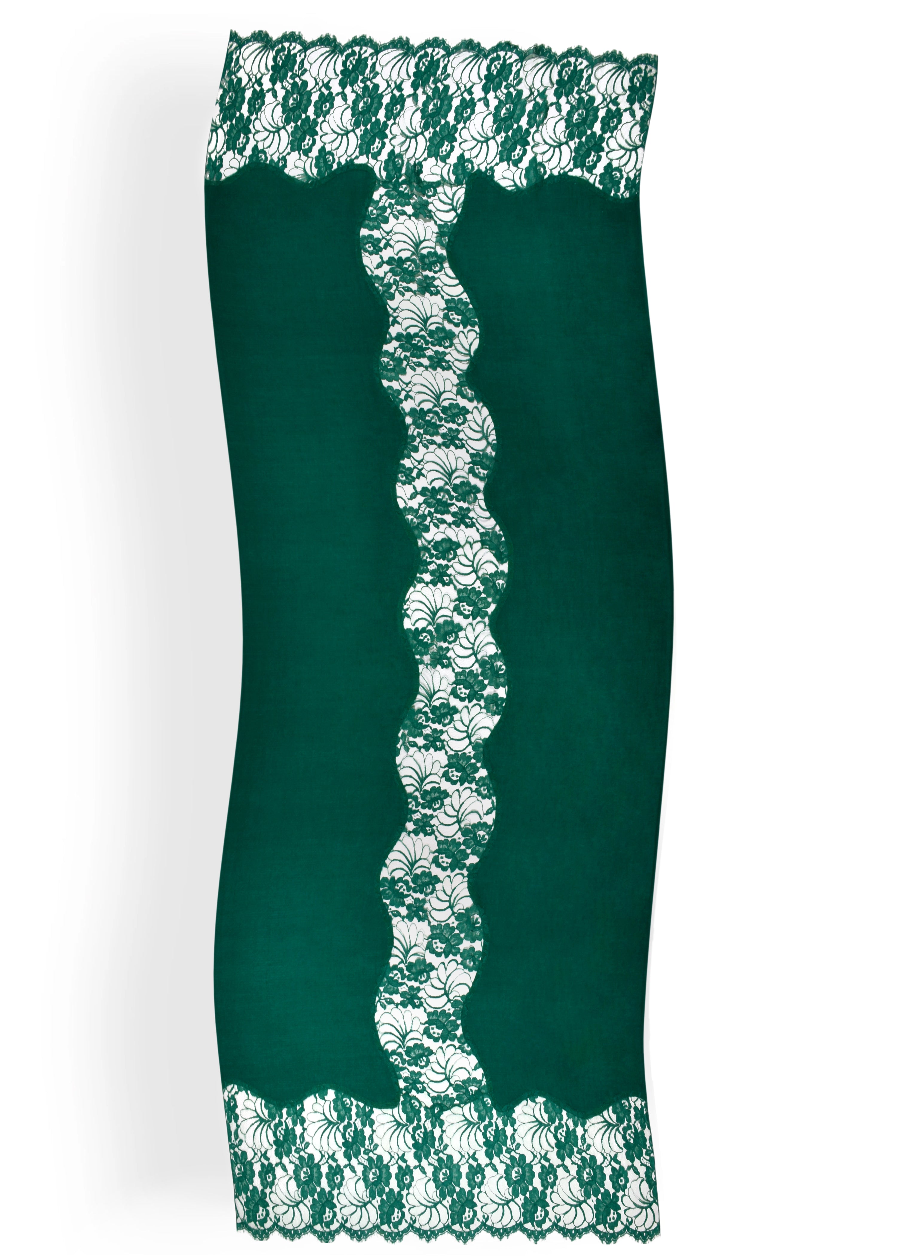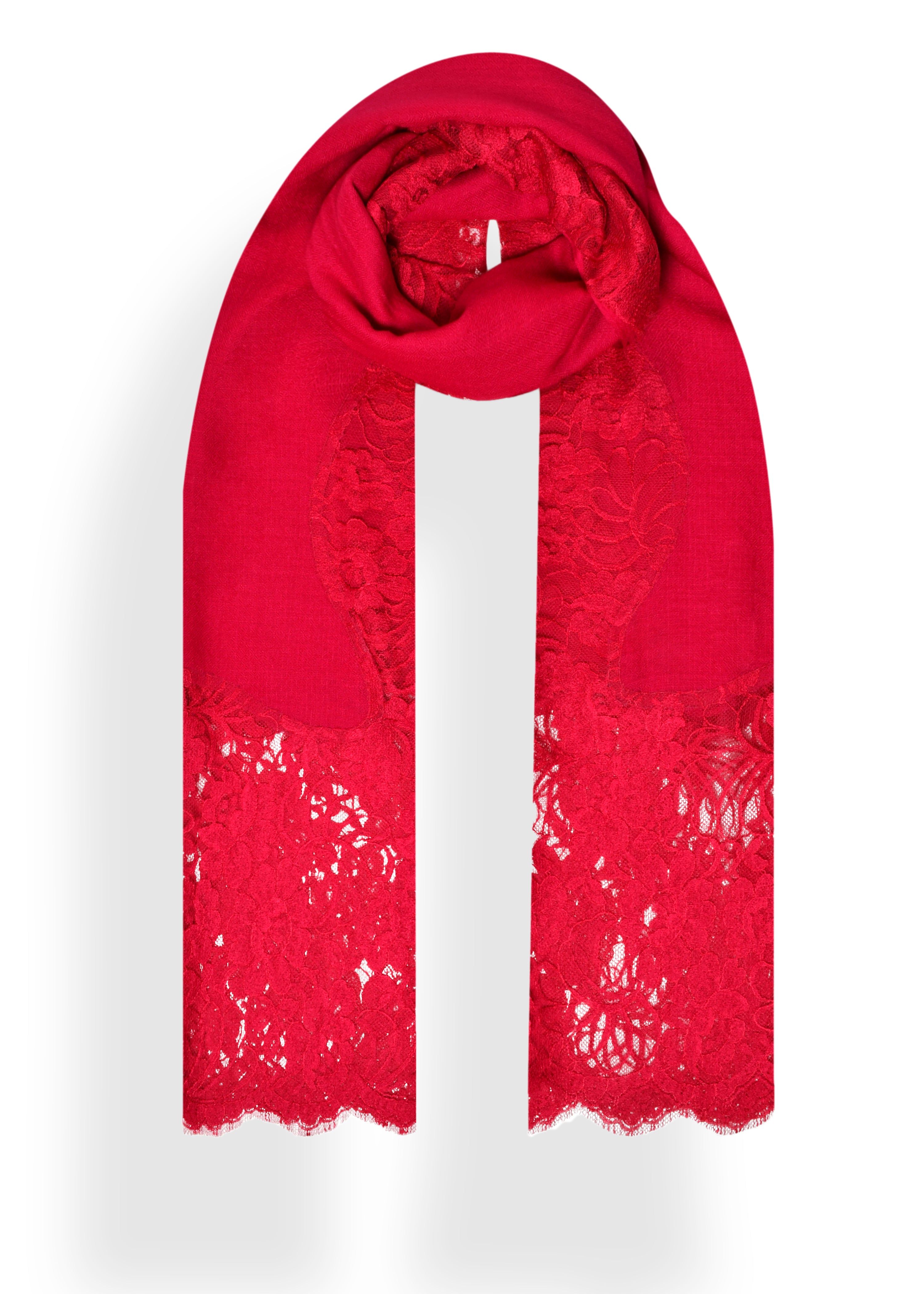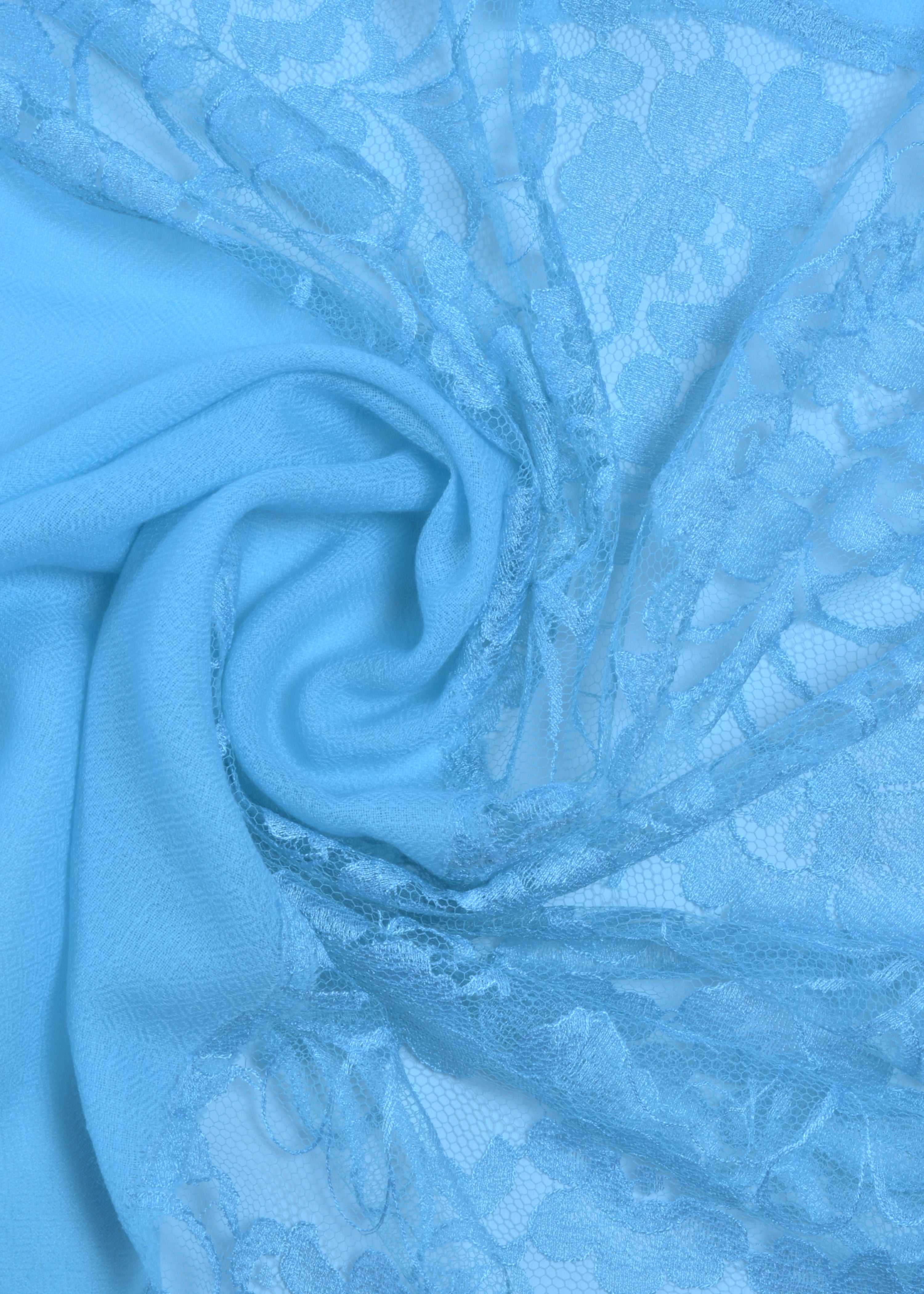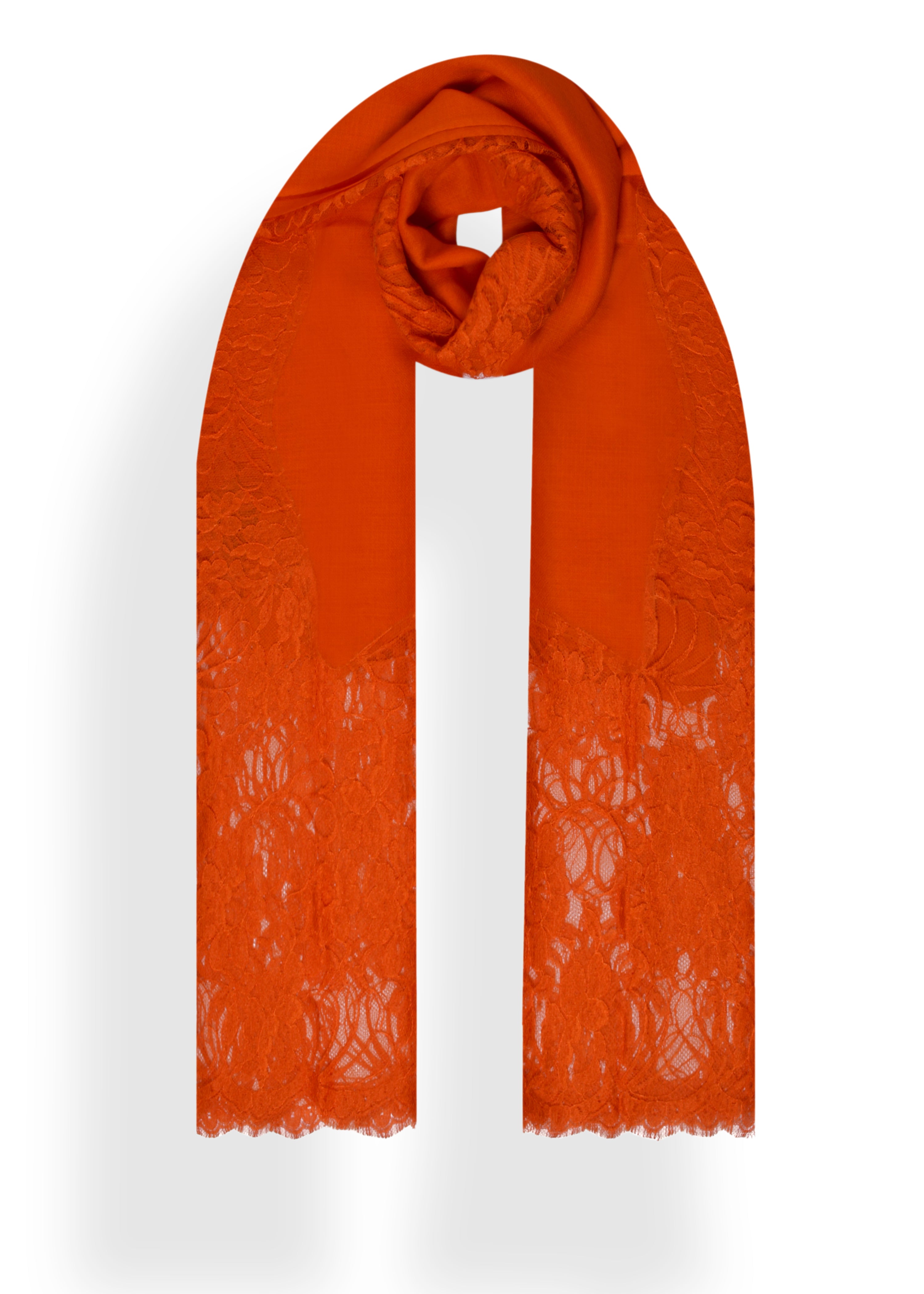 A Janavi Original, a fine Chantilly lace cloud emerges as if from a genies lamp, making a mystic path across finely spun cashmere.