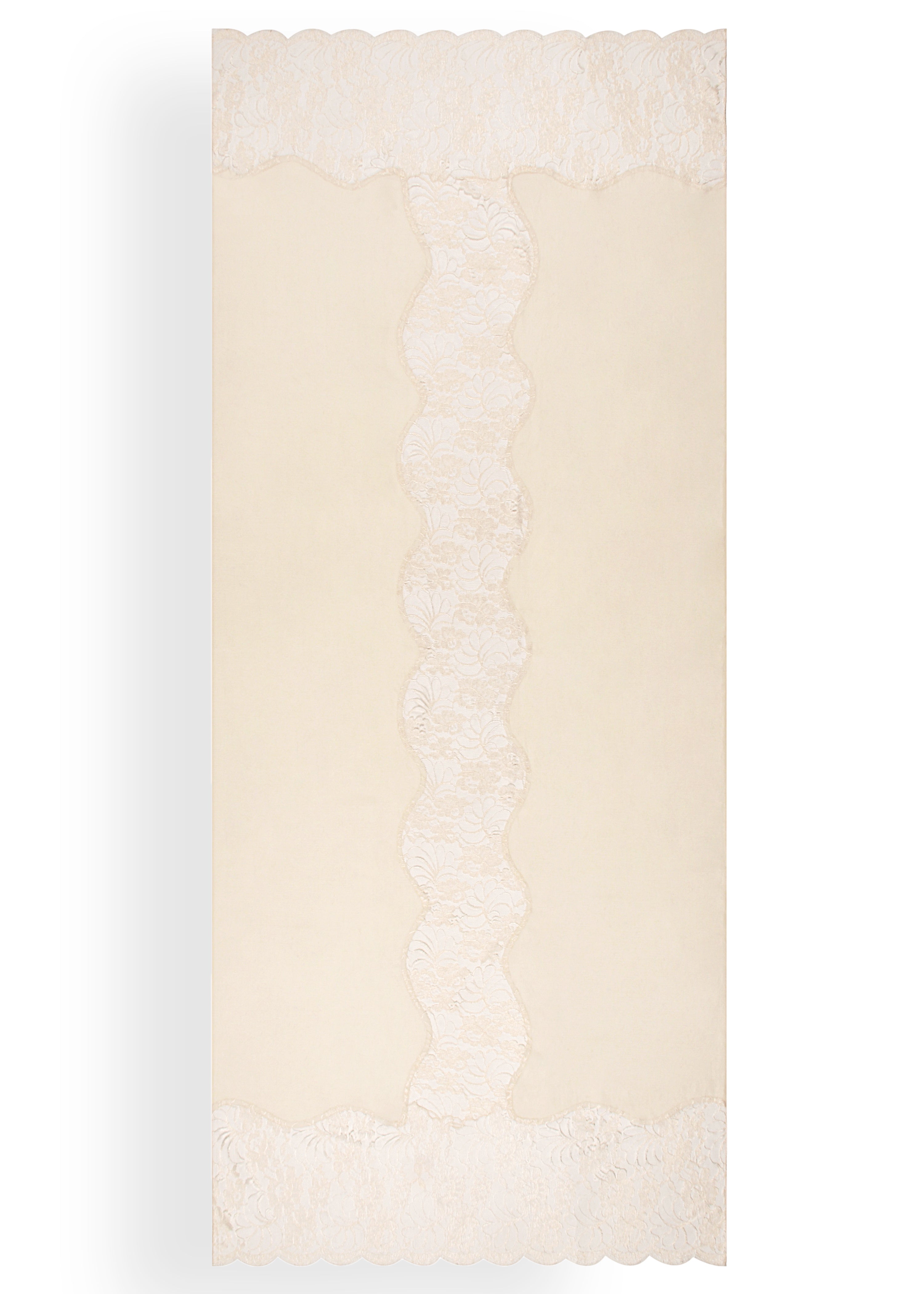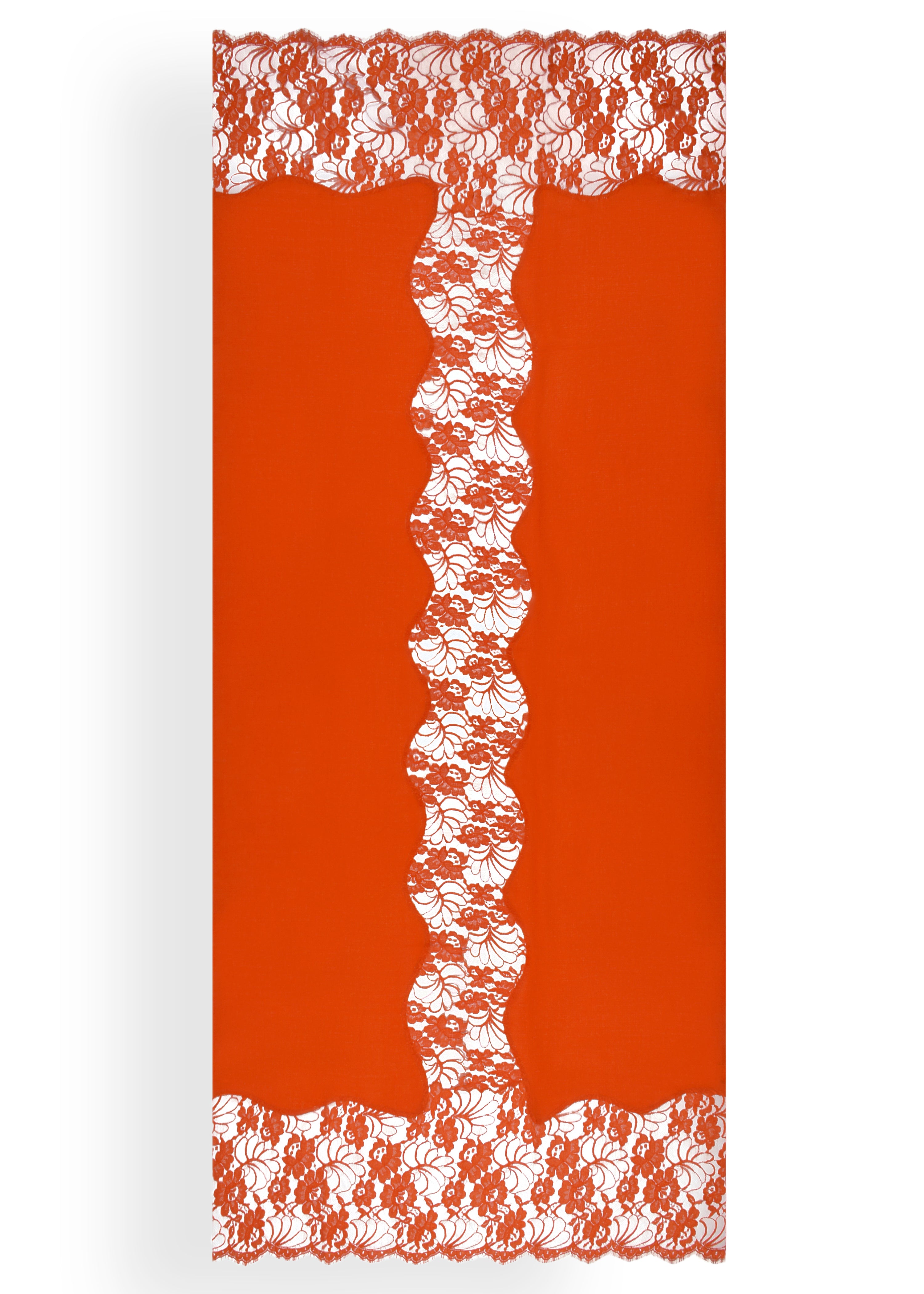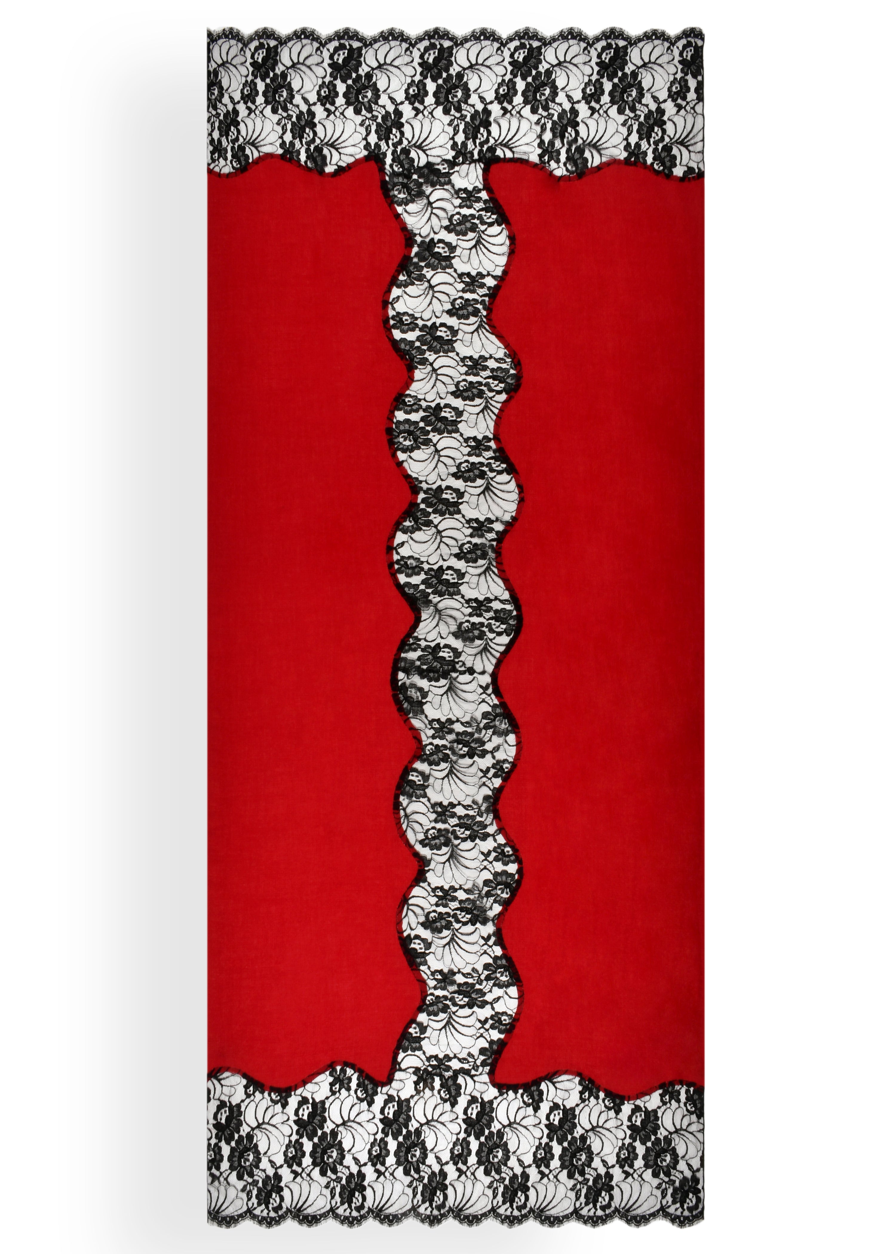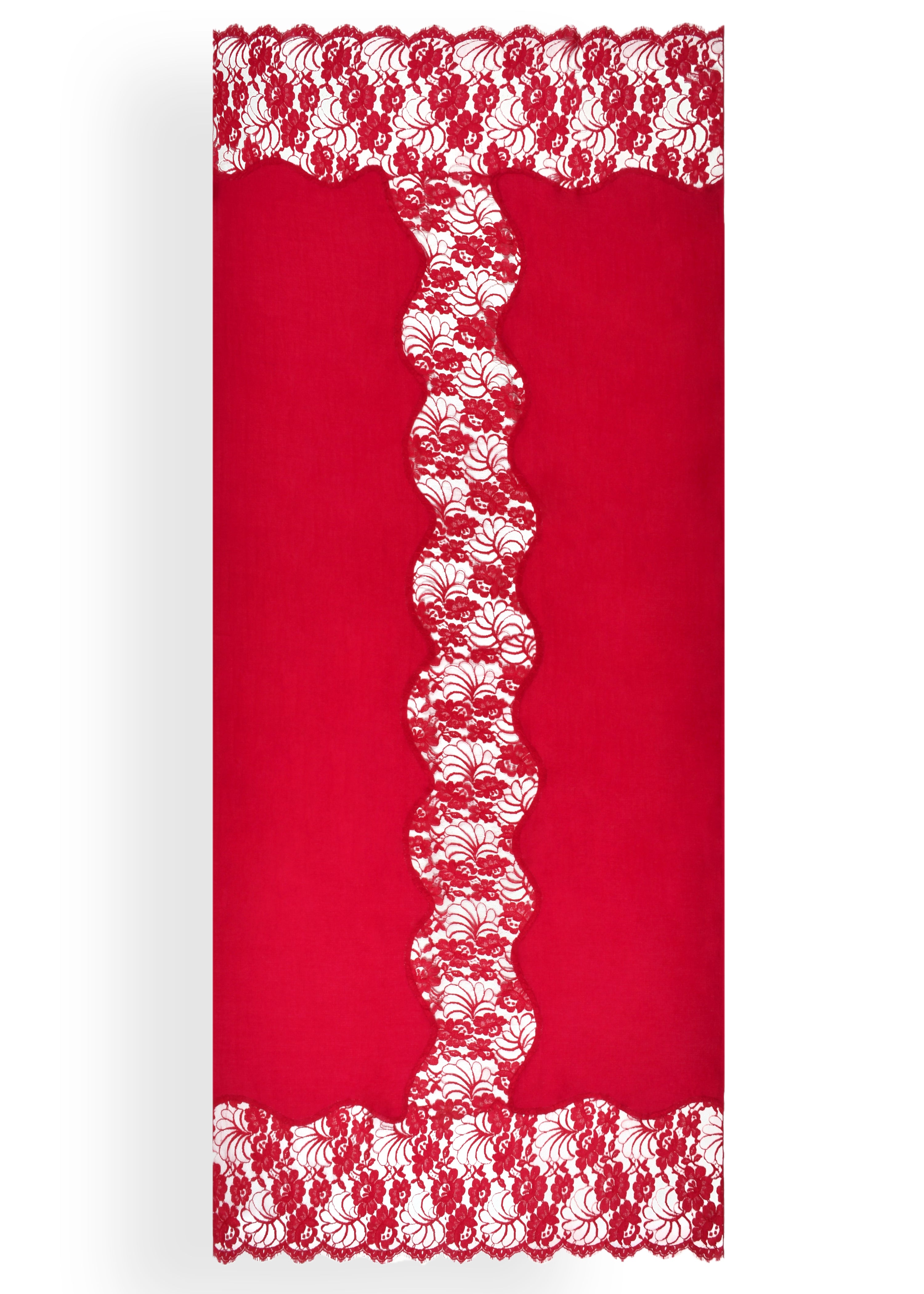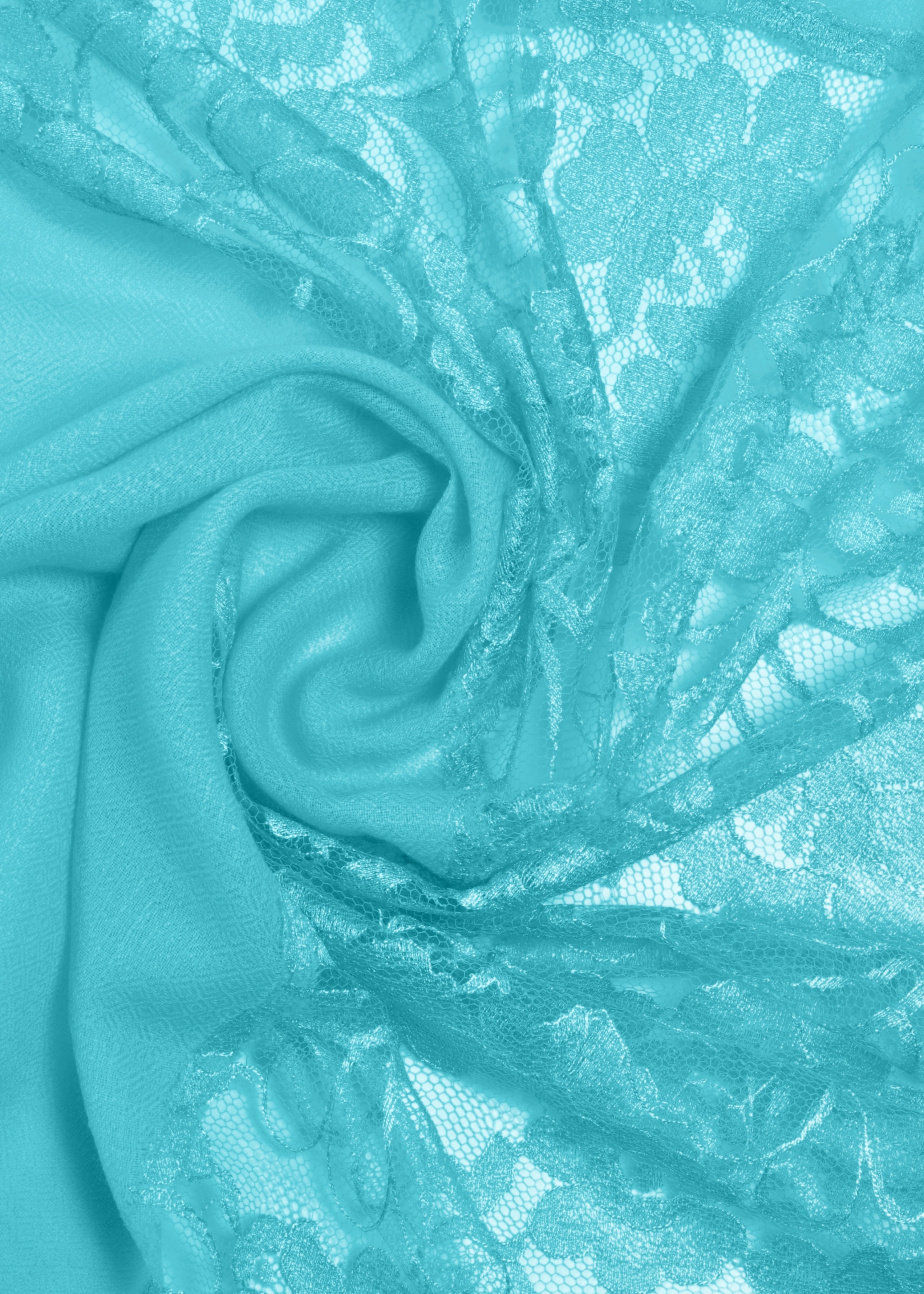 A Janavi Original, a fine Chantilly lace cloud emerges as if from a genies lamp, making a mystic path across finely spun cashmere.