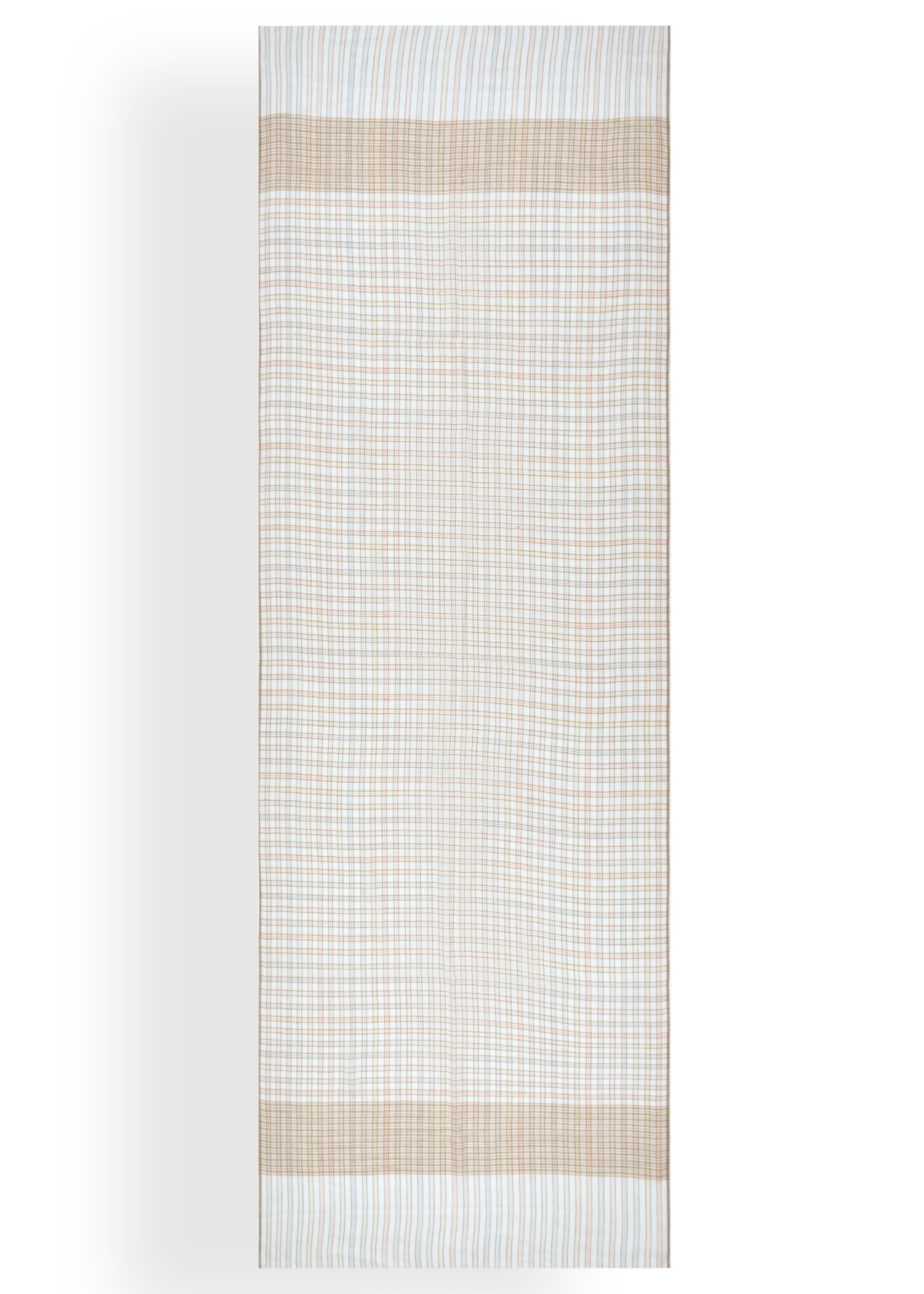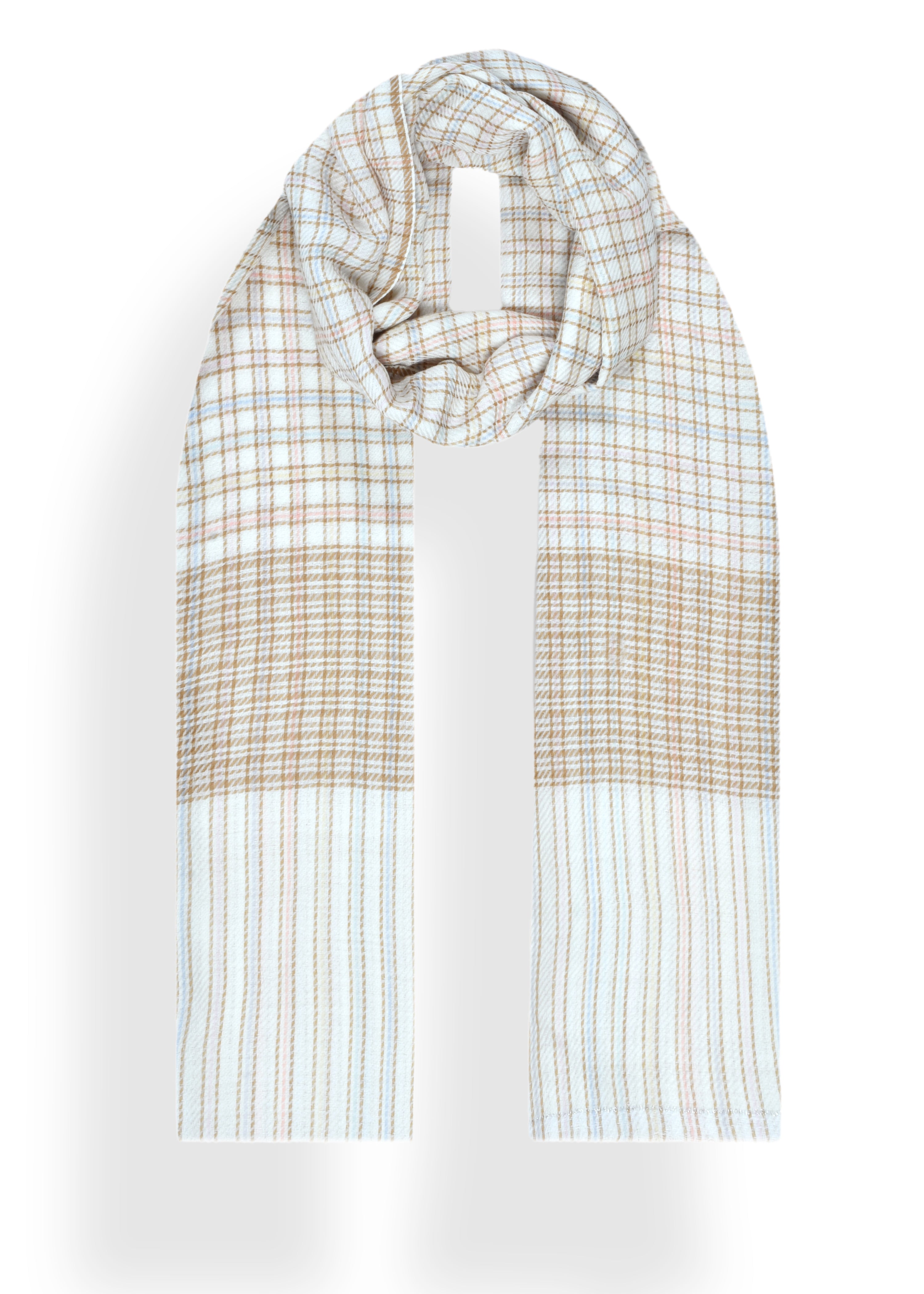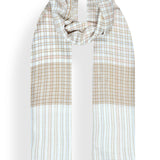 Versatile men's wrap crafted in sophisticated pin stripes, on ivory and beige combo pure Merino.