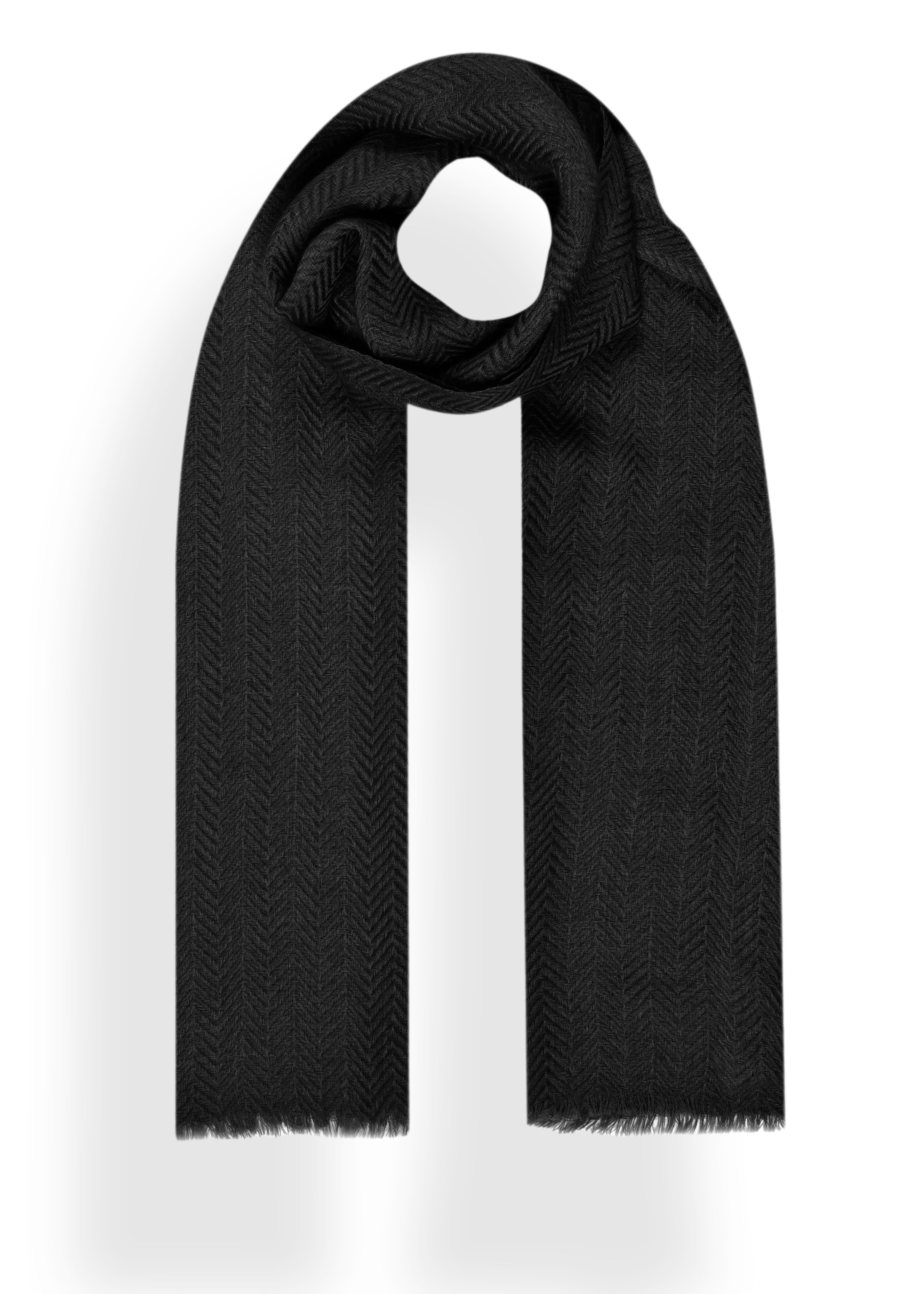 Timeless and formal men's wrap crafted in classic herring bone weave, on navy blue pure Cashmere.