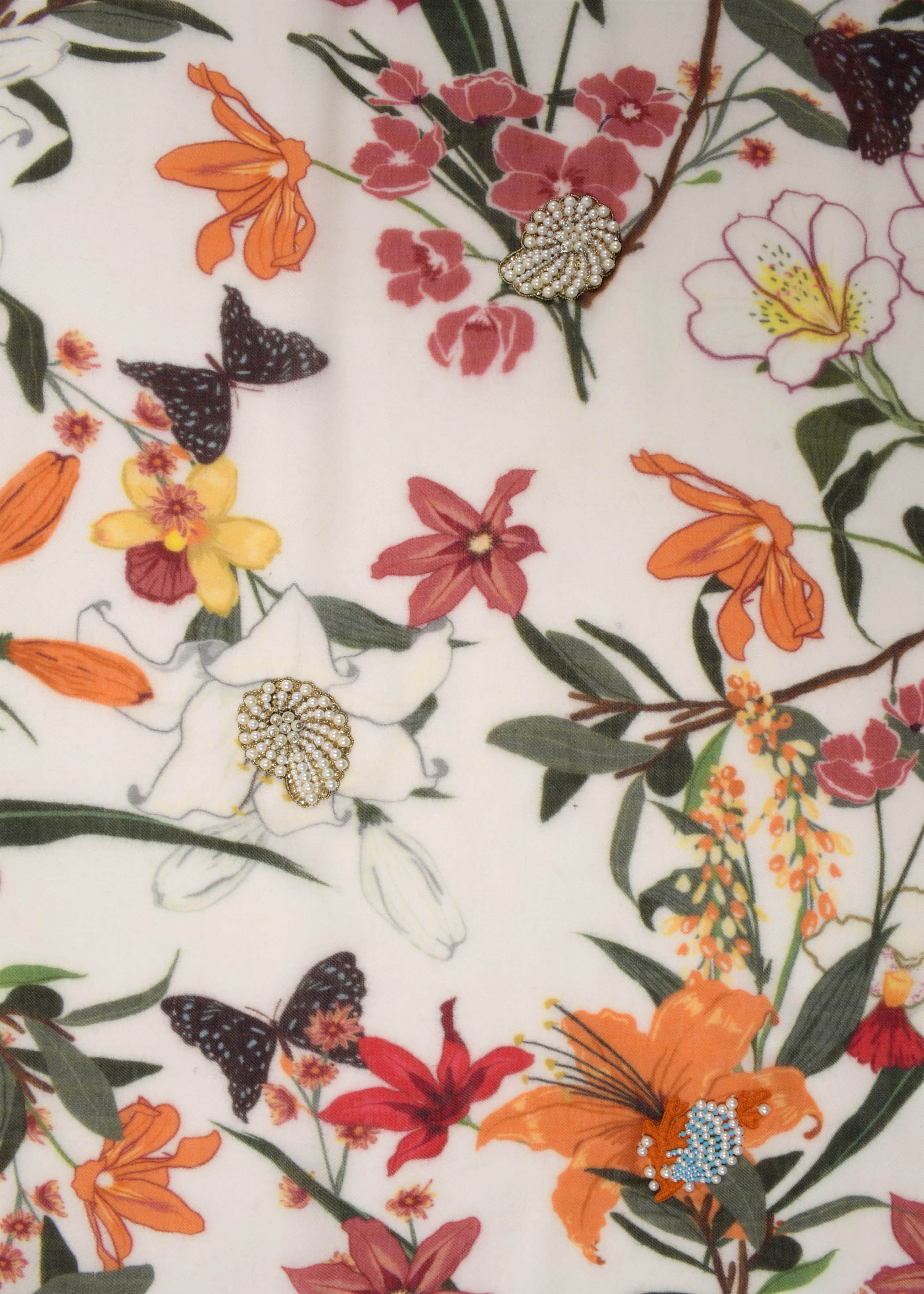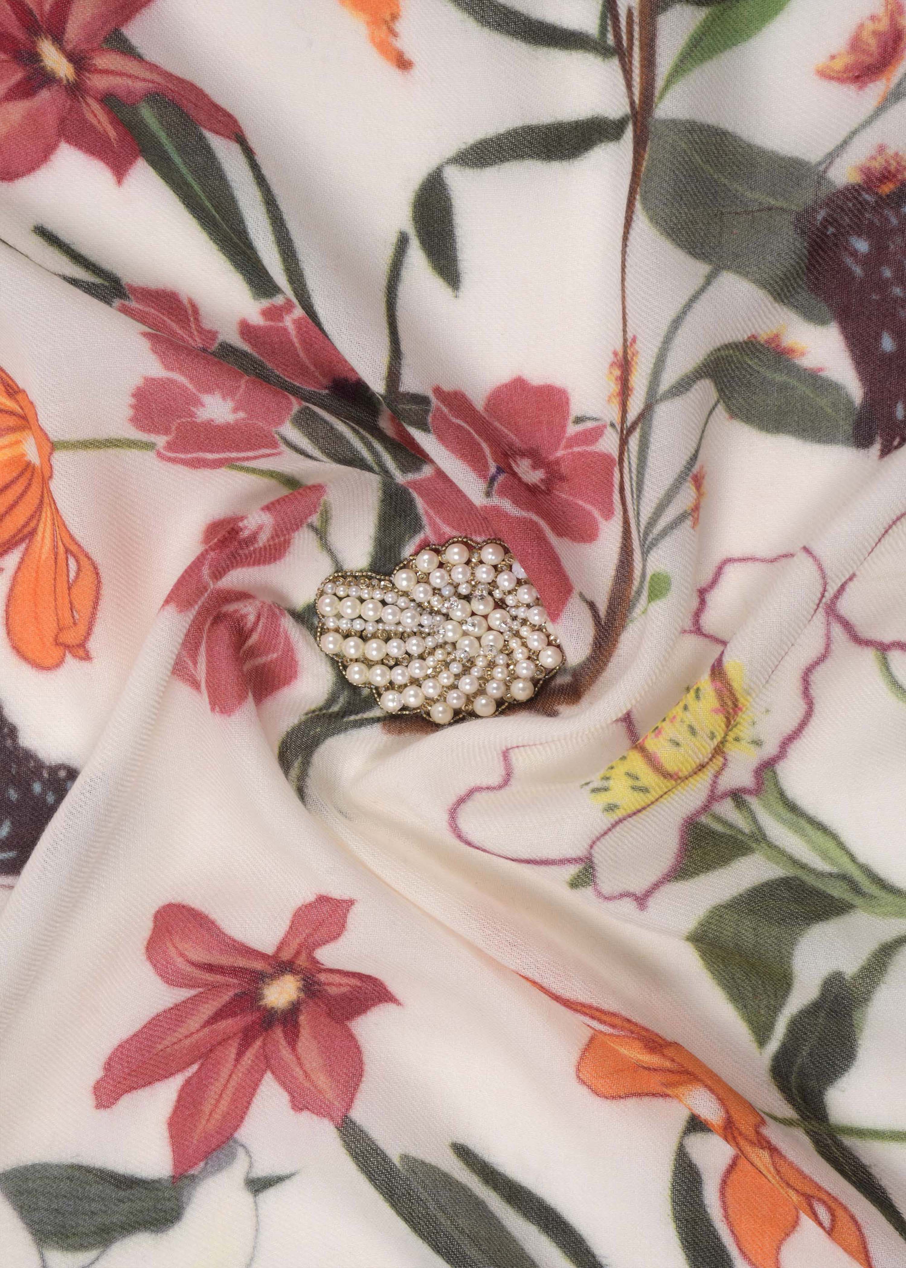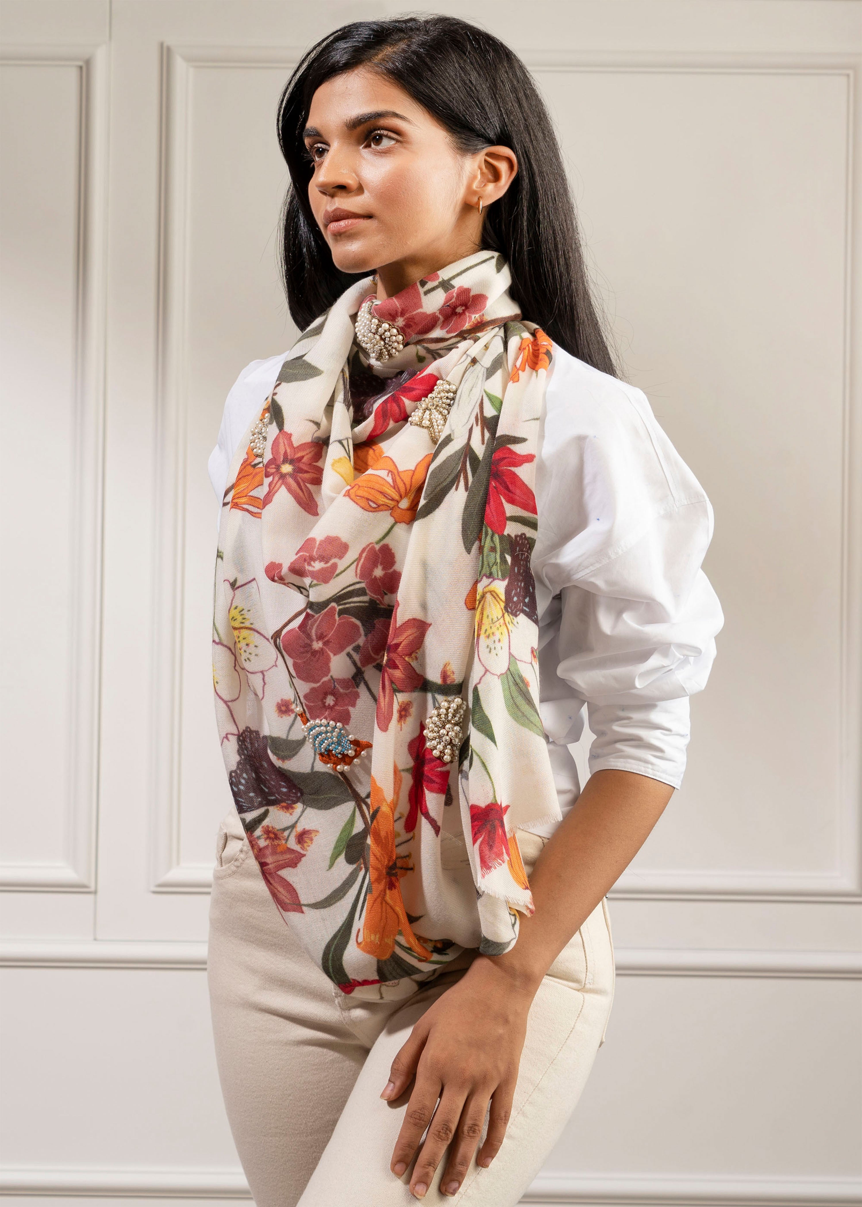 An unforgettable ode to nature! Janavi’s ‘Coral Pearls’ shawl in ivory