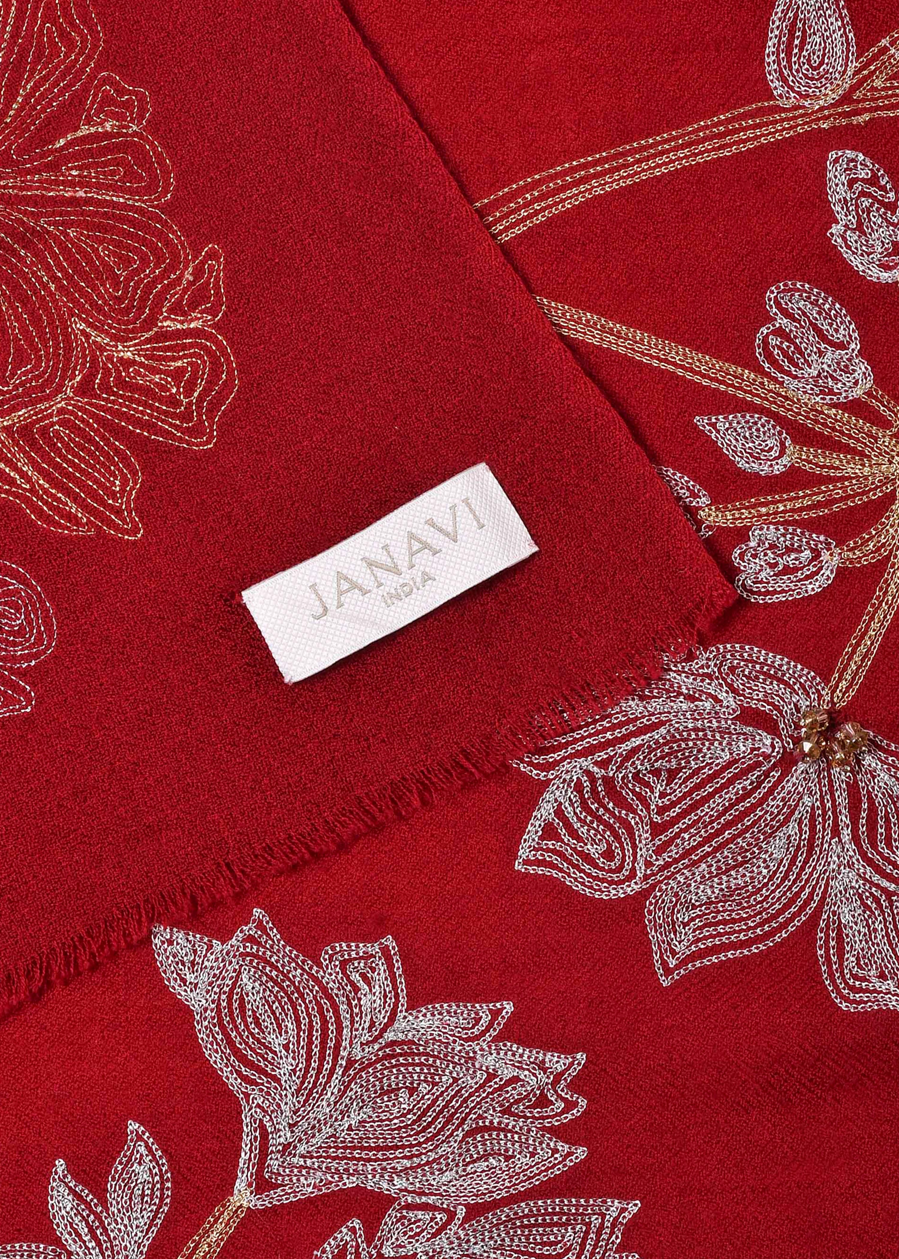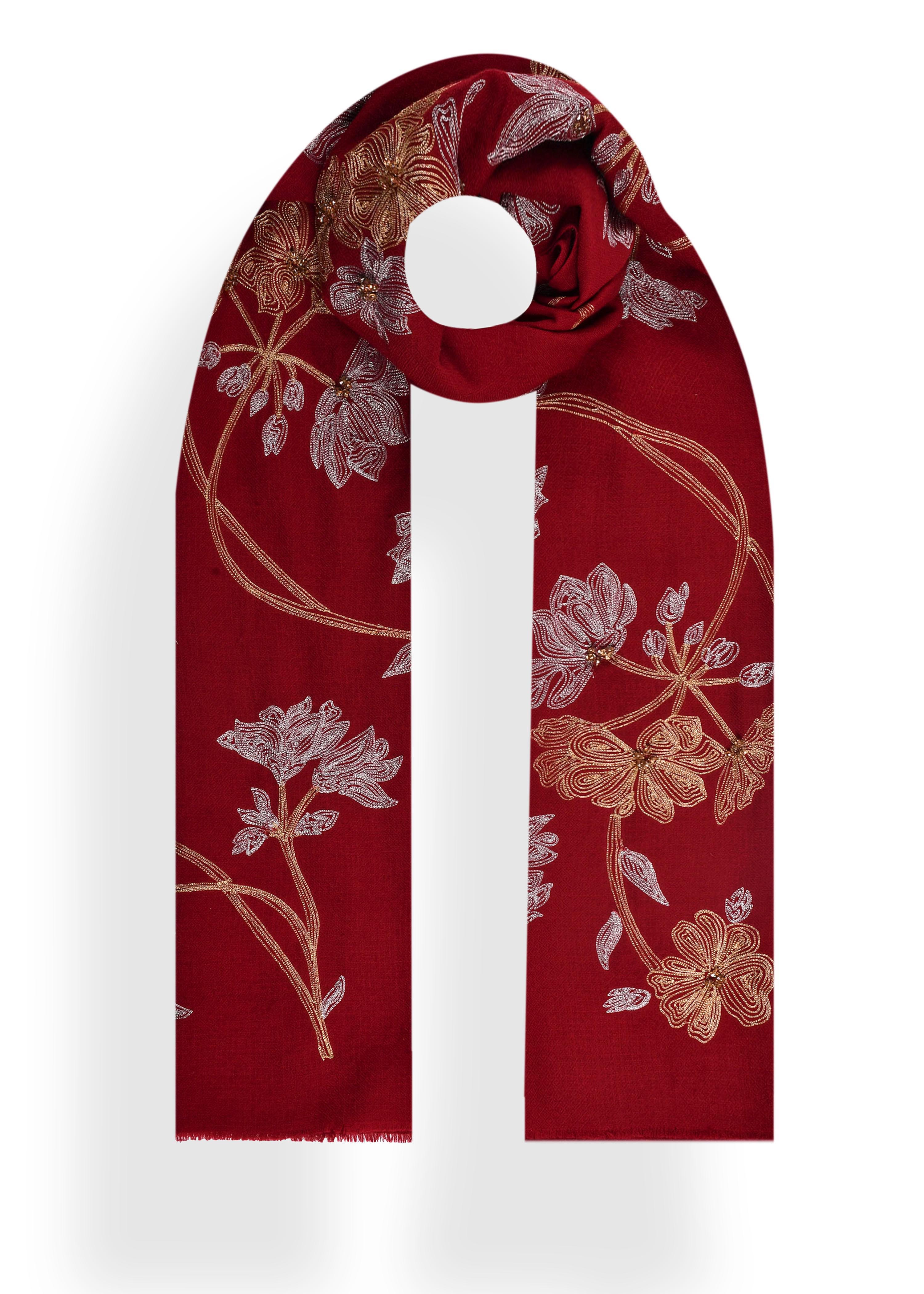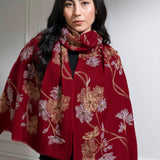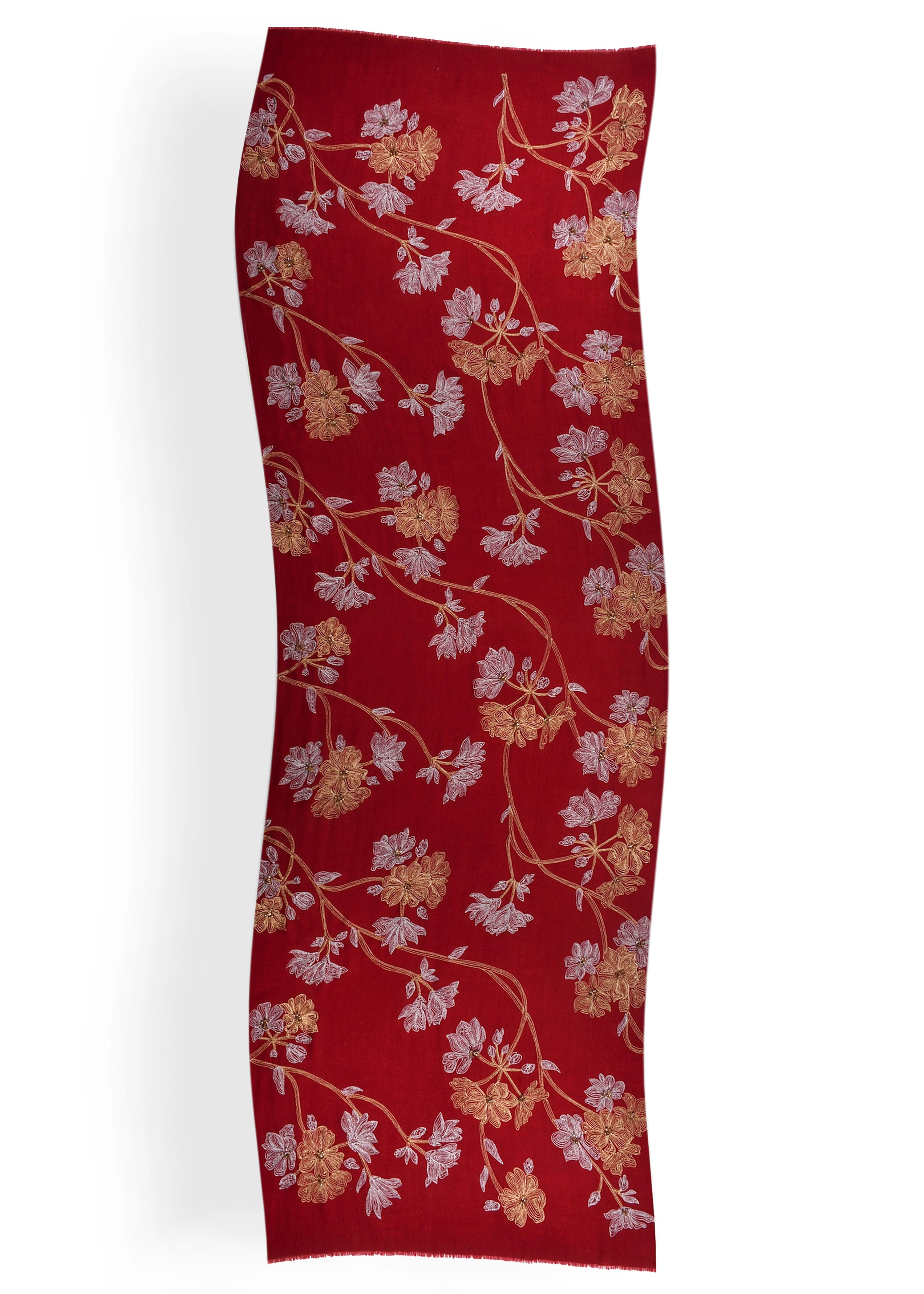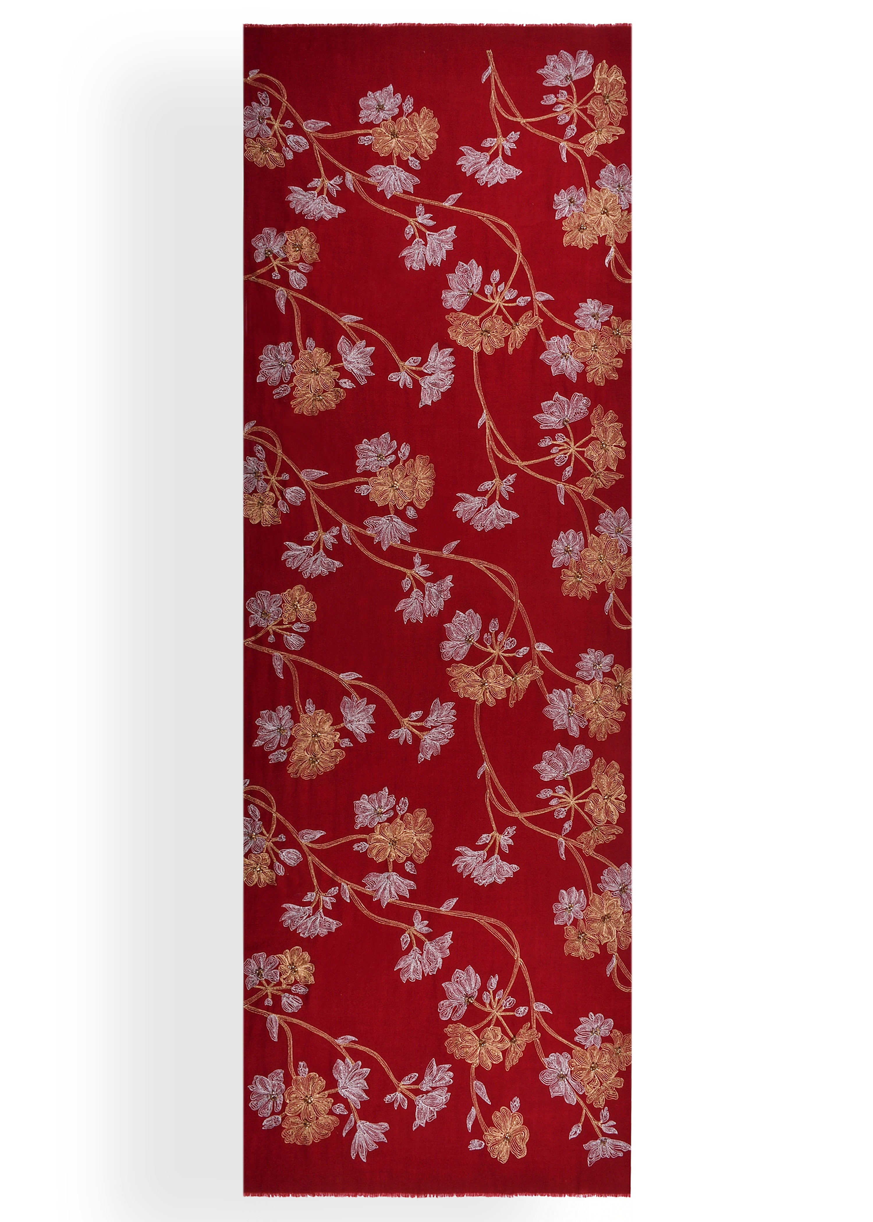 Finely spun soft merino with a veil of blooming spring garden to wrap yourself within. Every fold in this piece has a silk thread floral surprise hidden within.