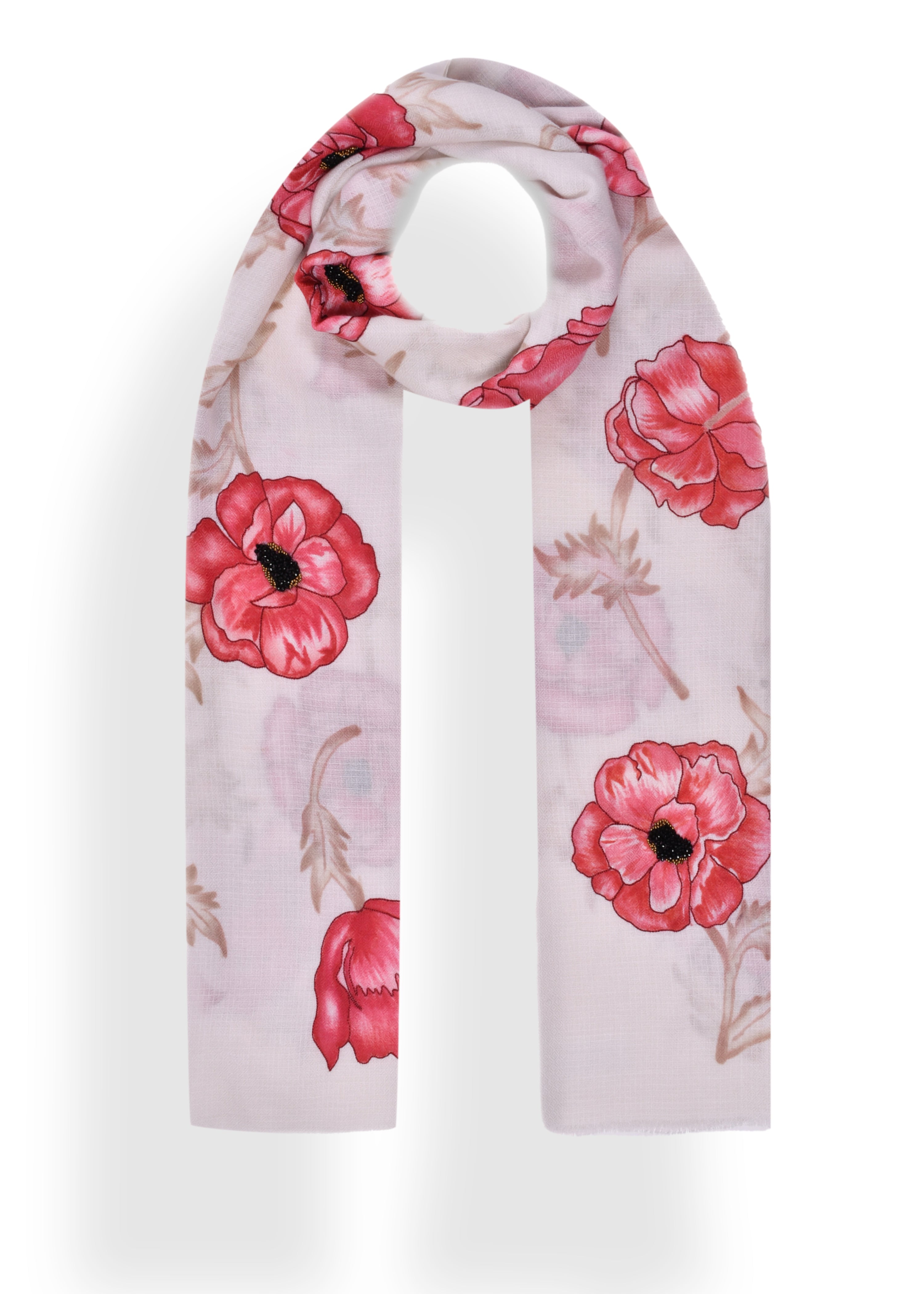 Hand painted garden on an ivory print pure Cashmere wrap.