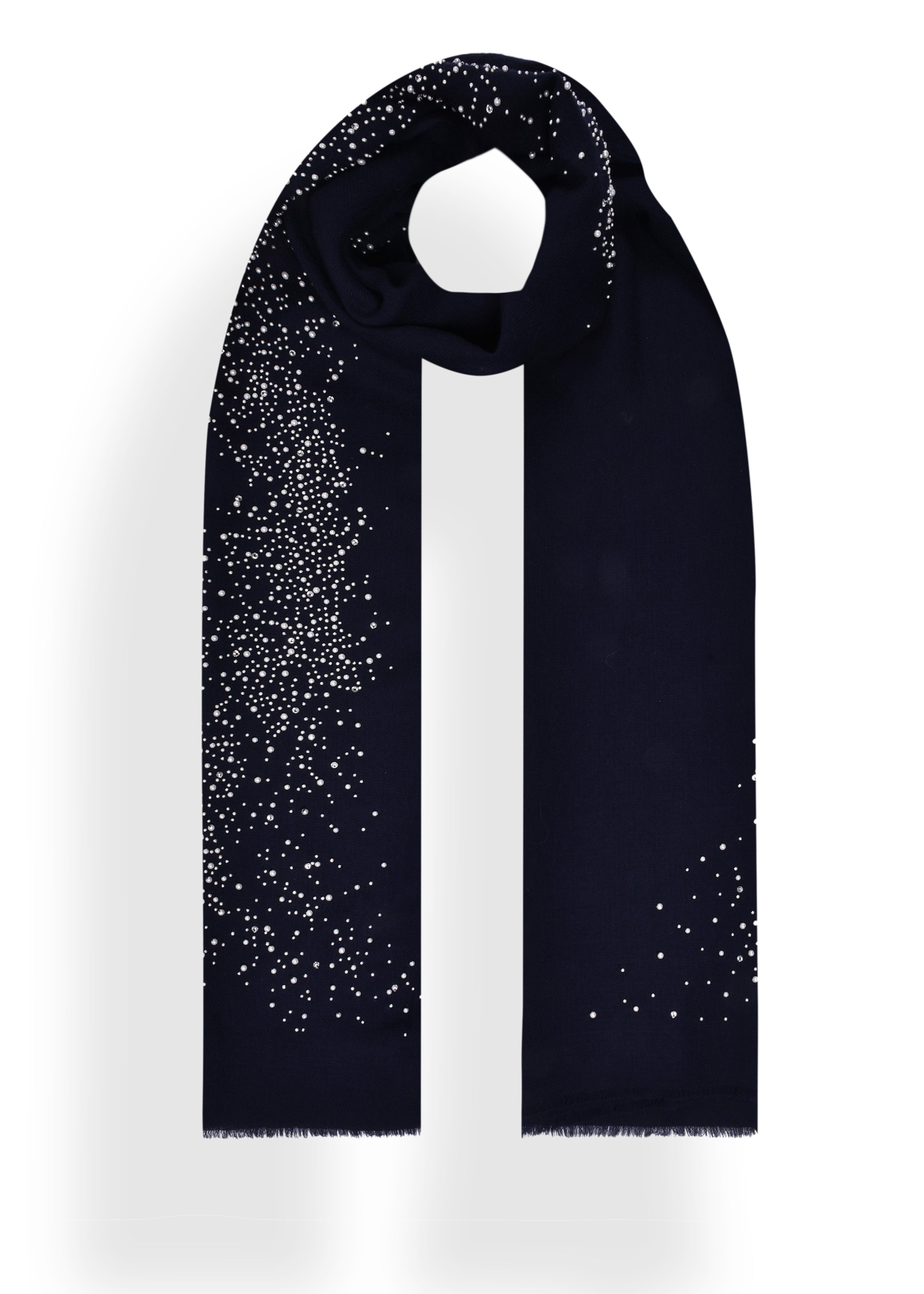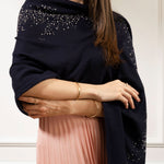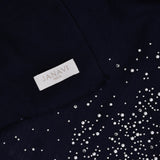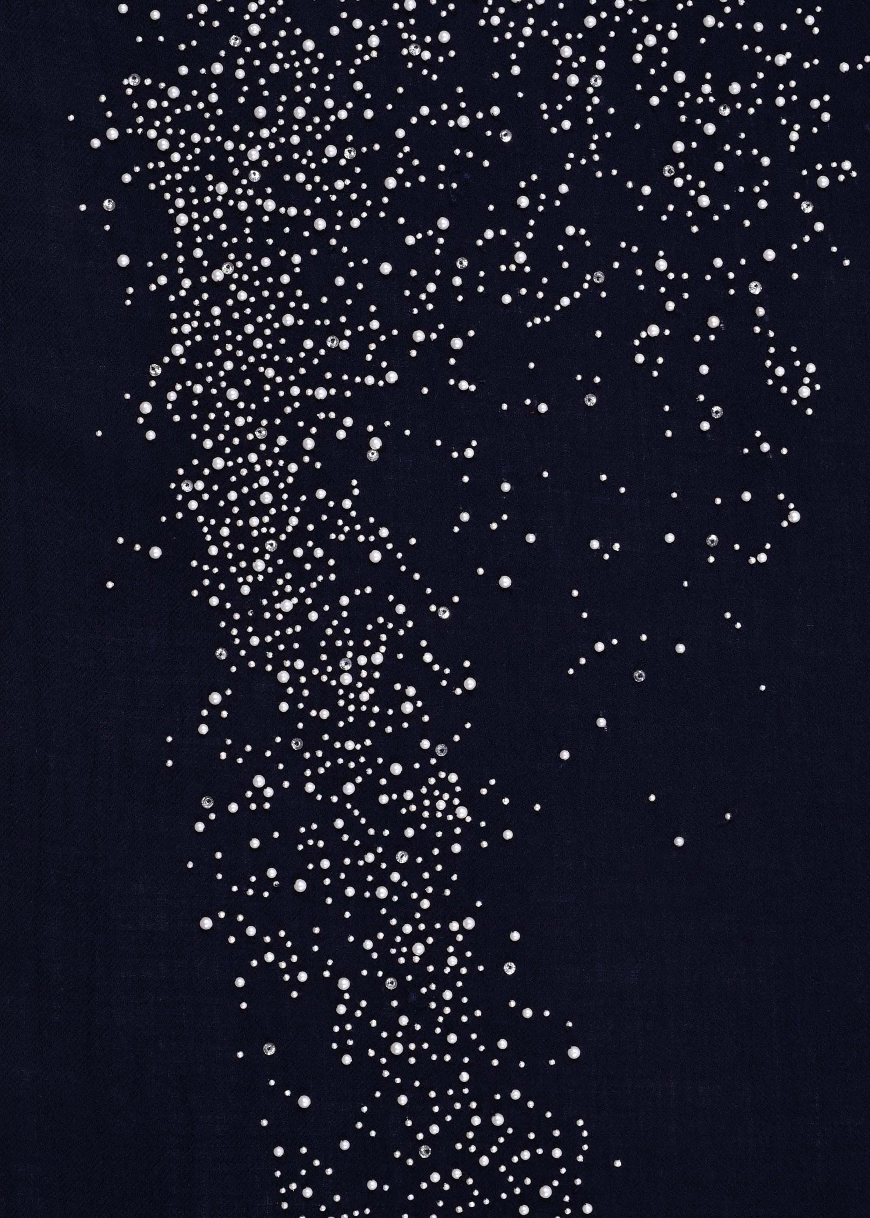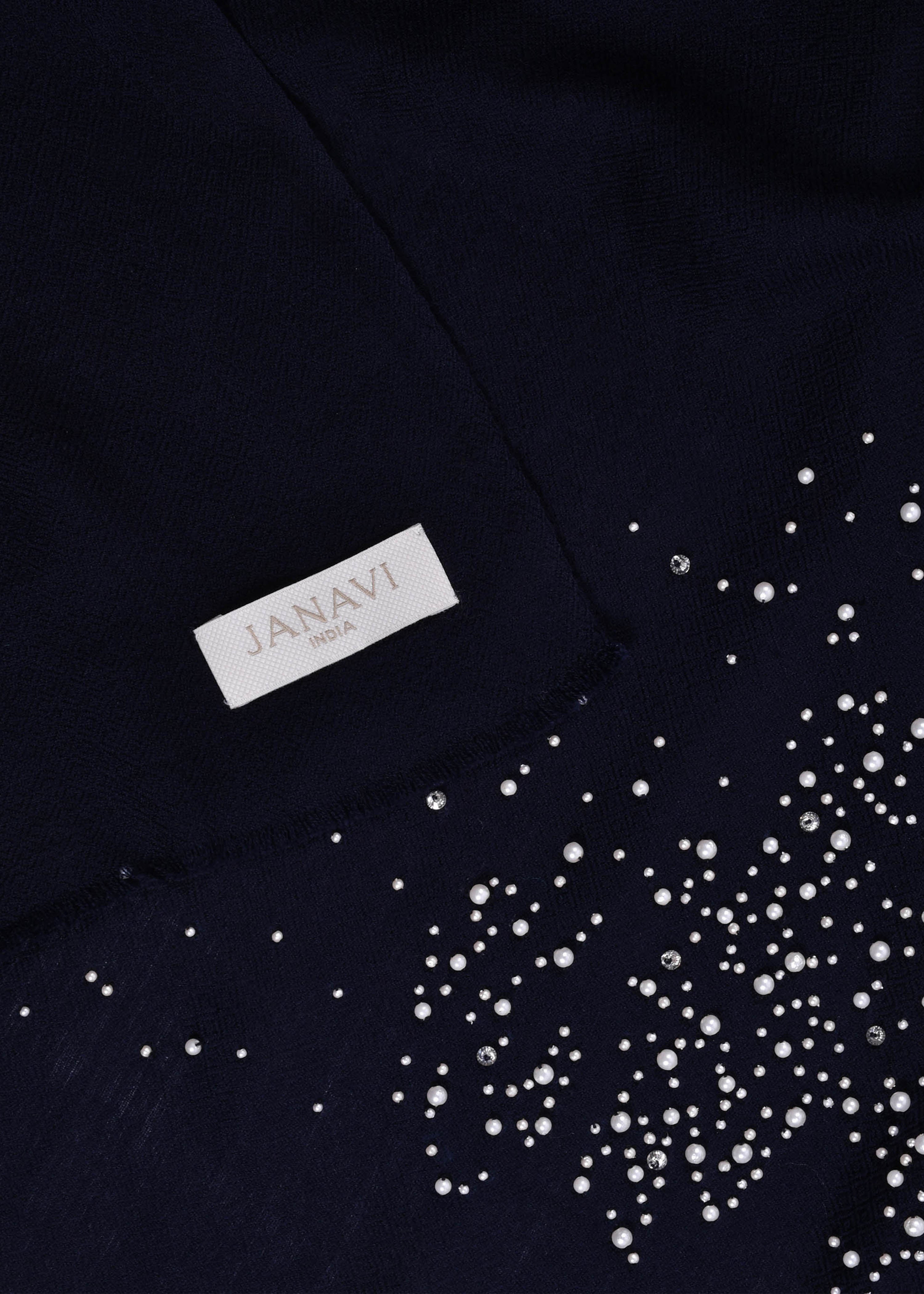 Hand Embroidered Galaxy in silver Japanese beads and ivory pearls crafted on a navy Merino wrap.
