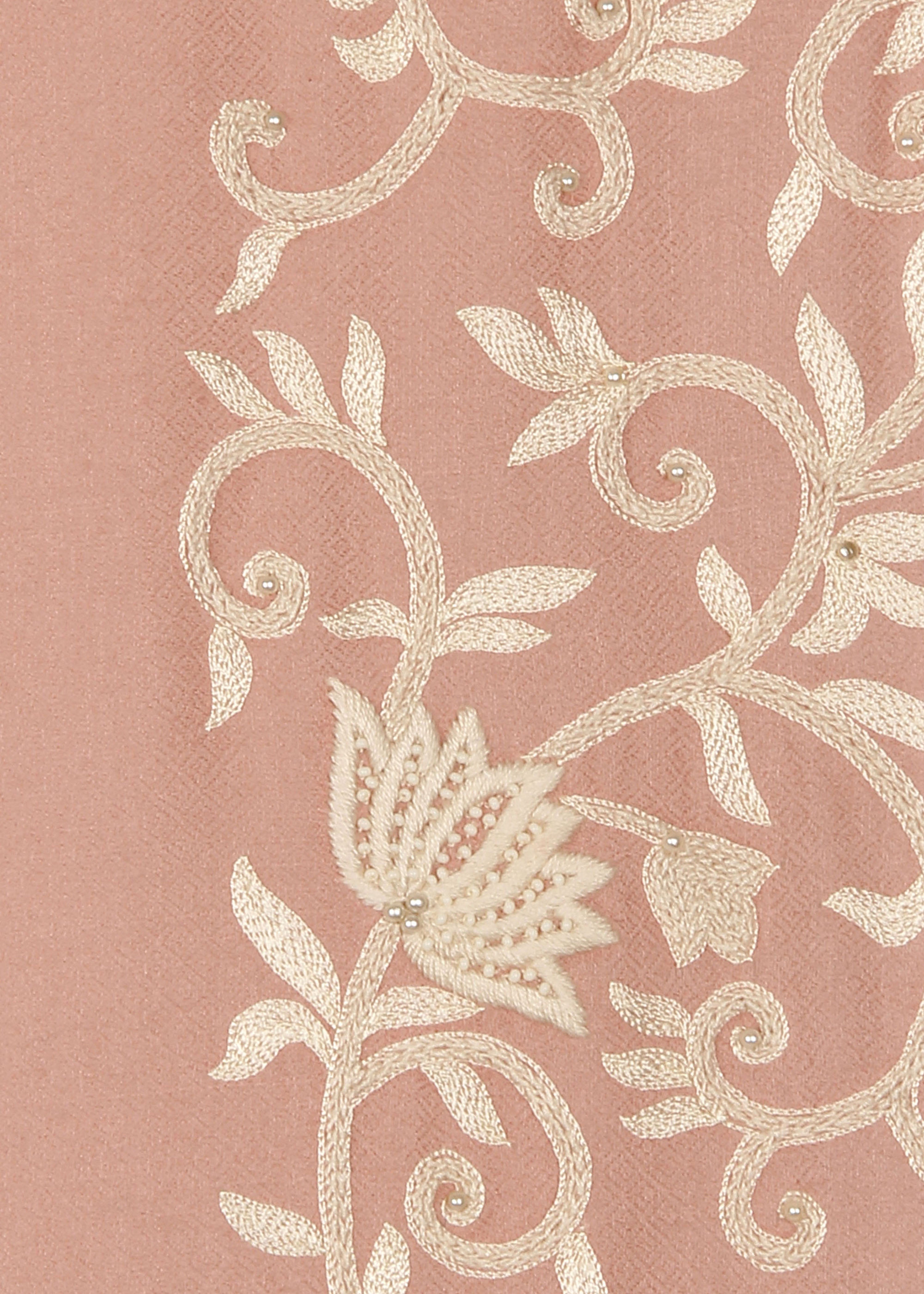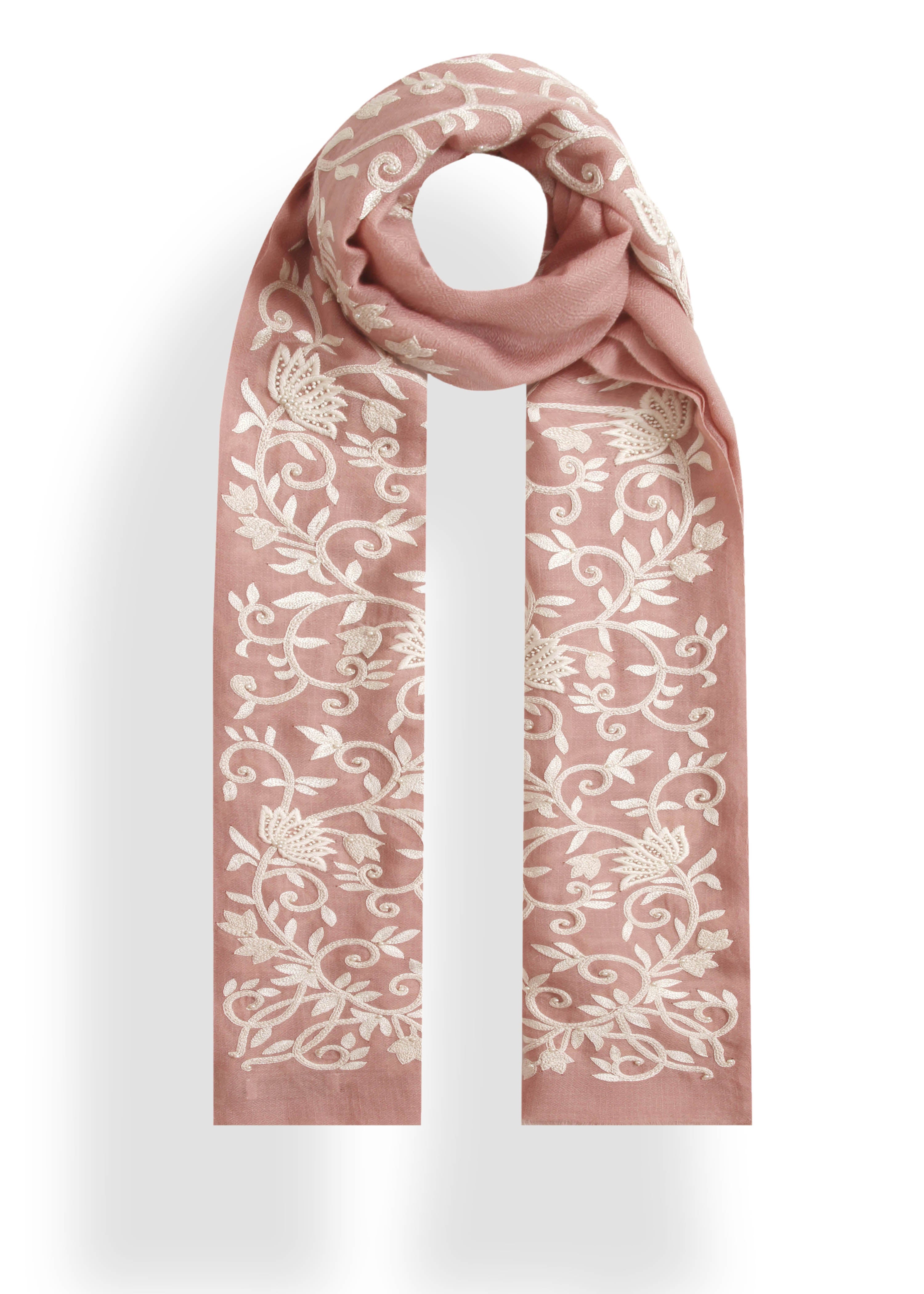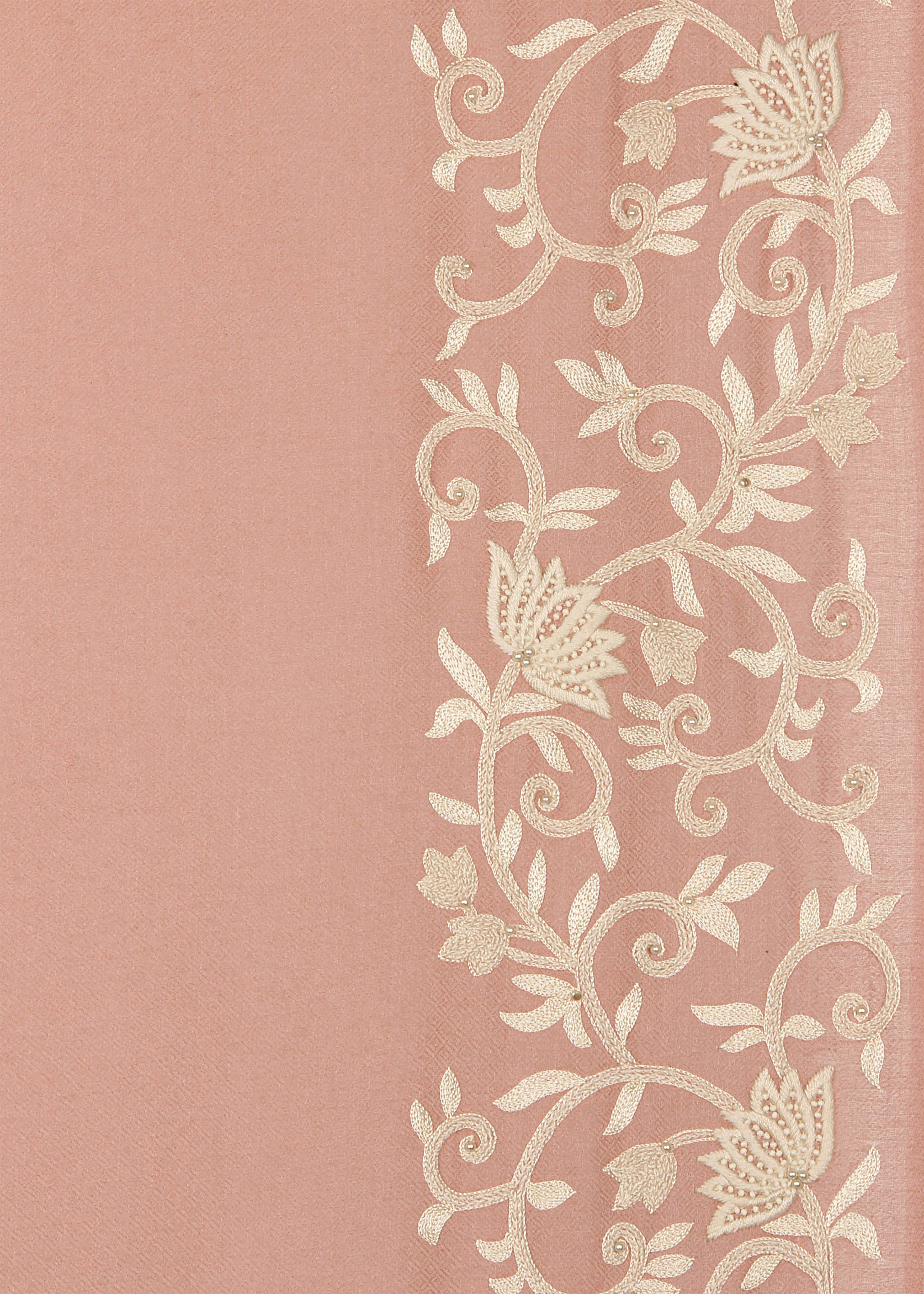 Nude Pure cashmere wrap hand embroidered with silk threads and japanese beads.