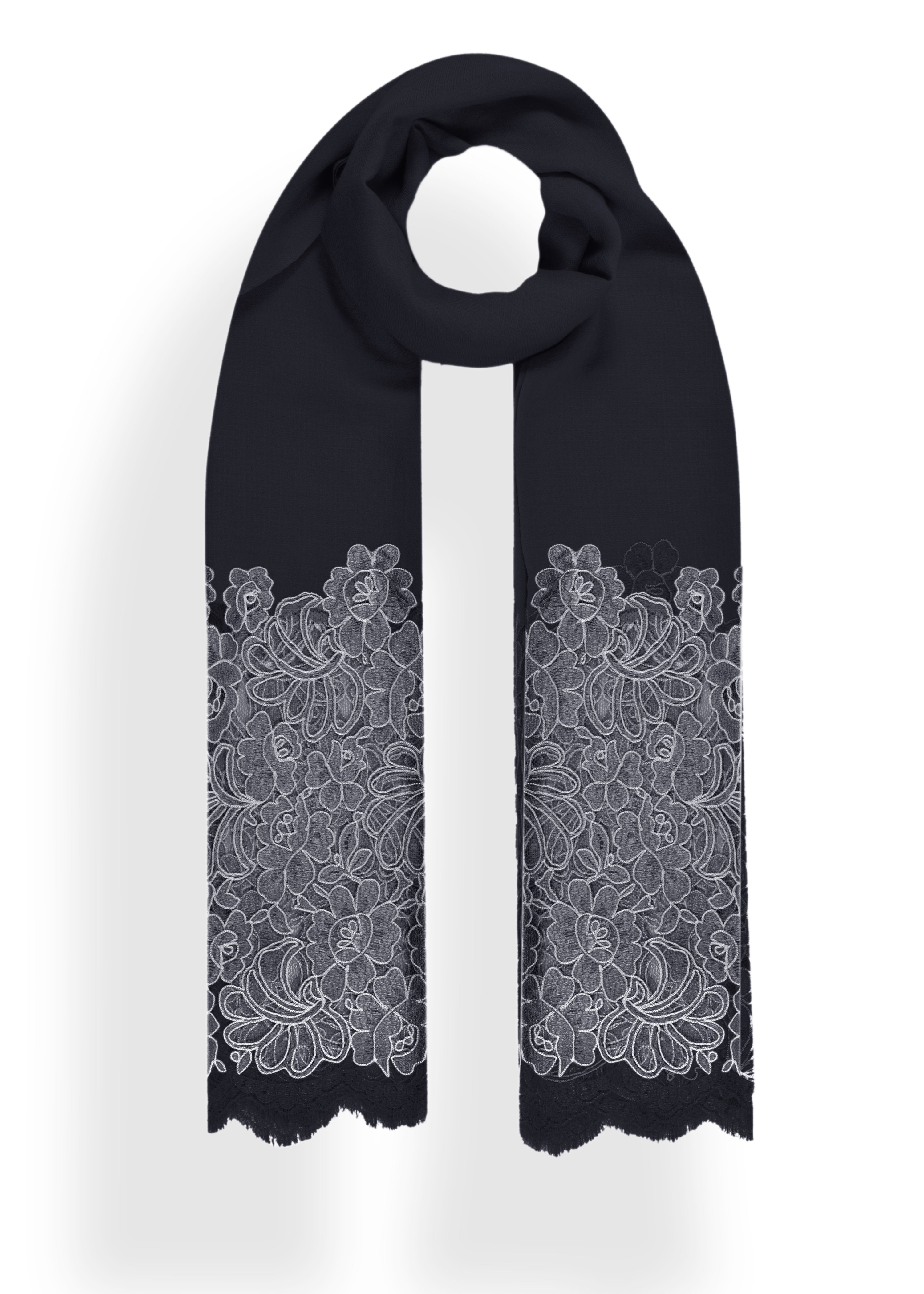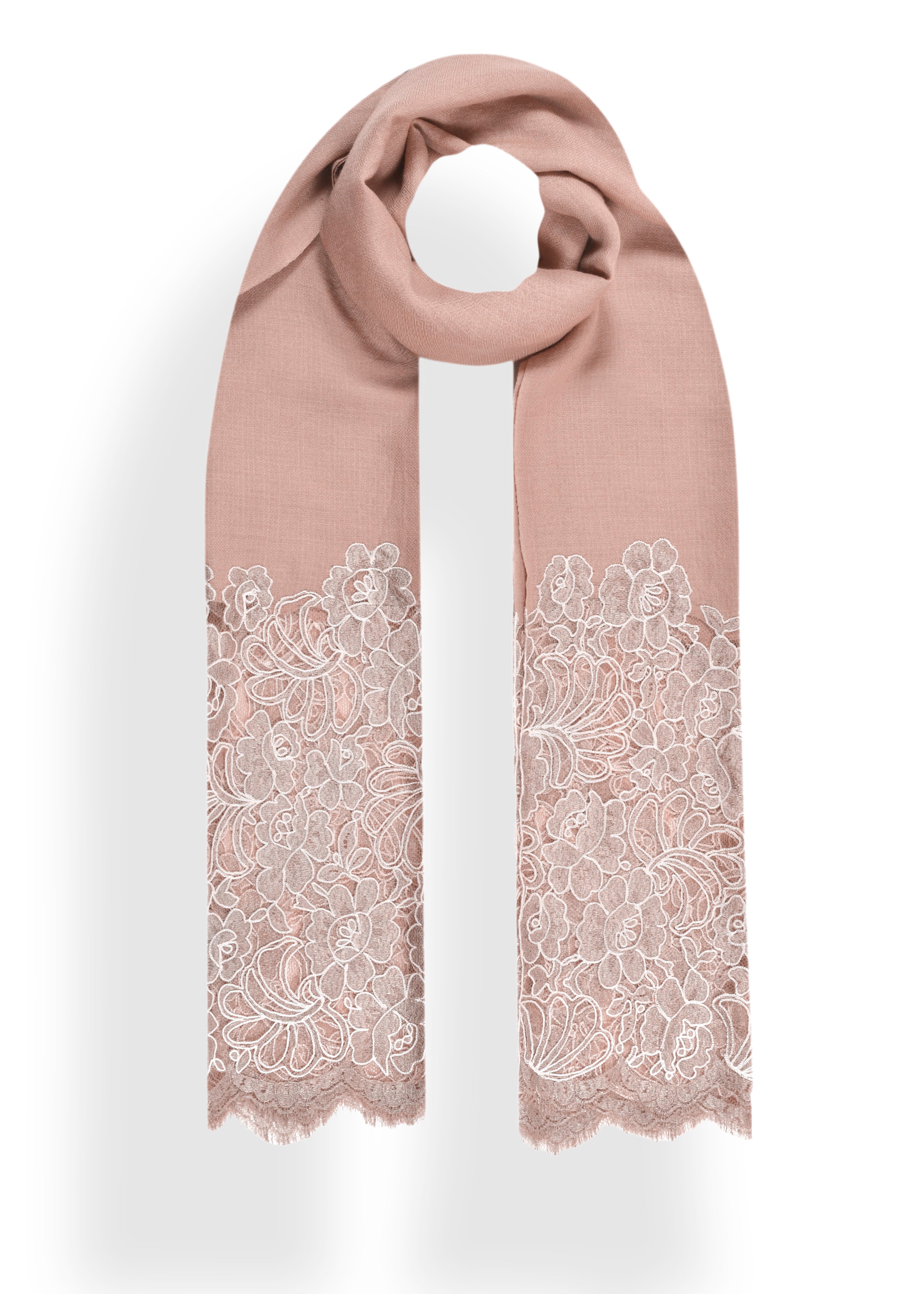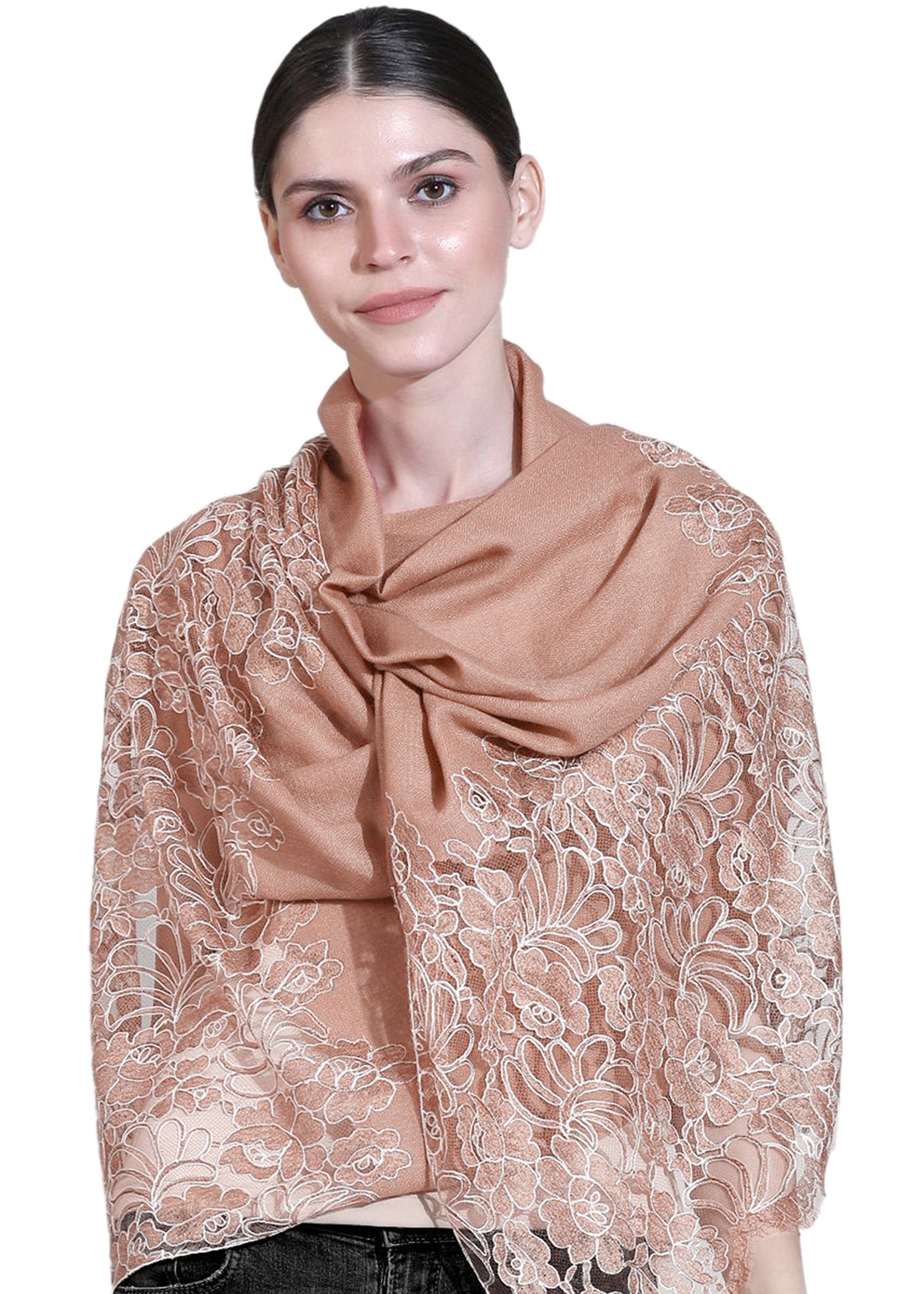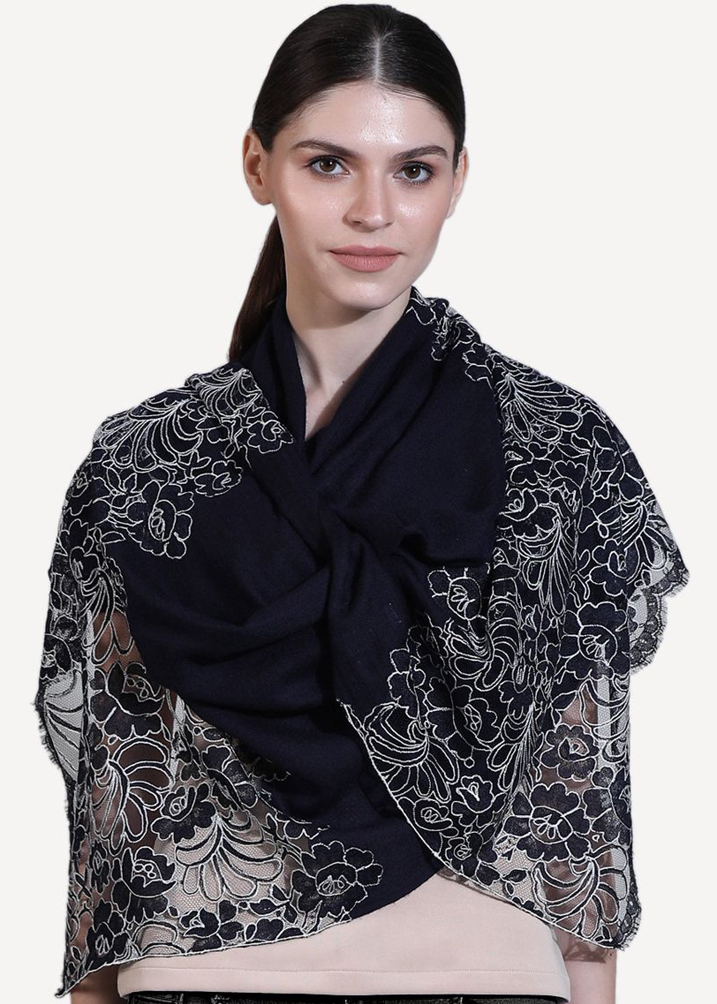 A Janavi Original, delicate embroidered Chantilly lace and luxurious hand spun cashmere come delicately together.