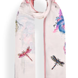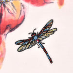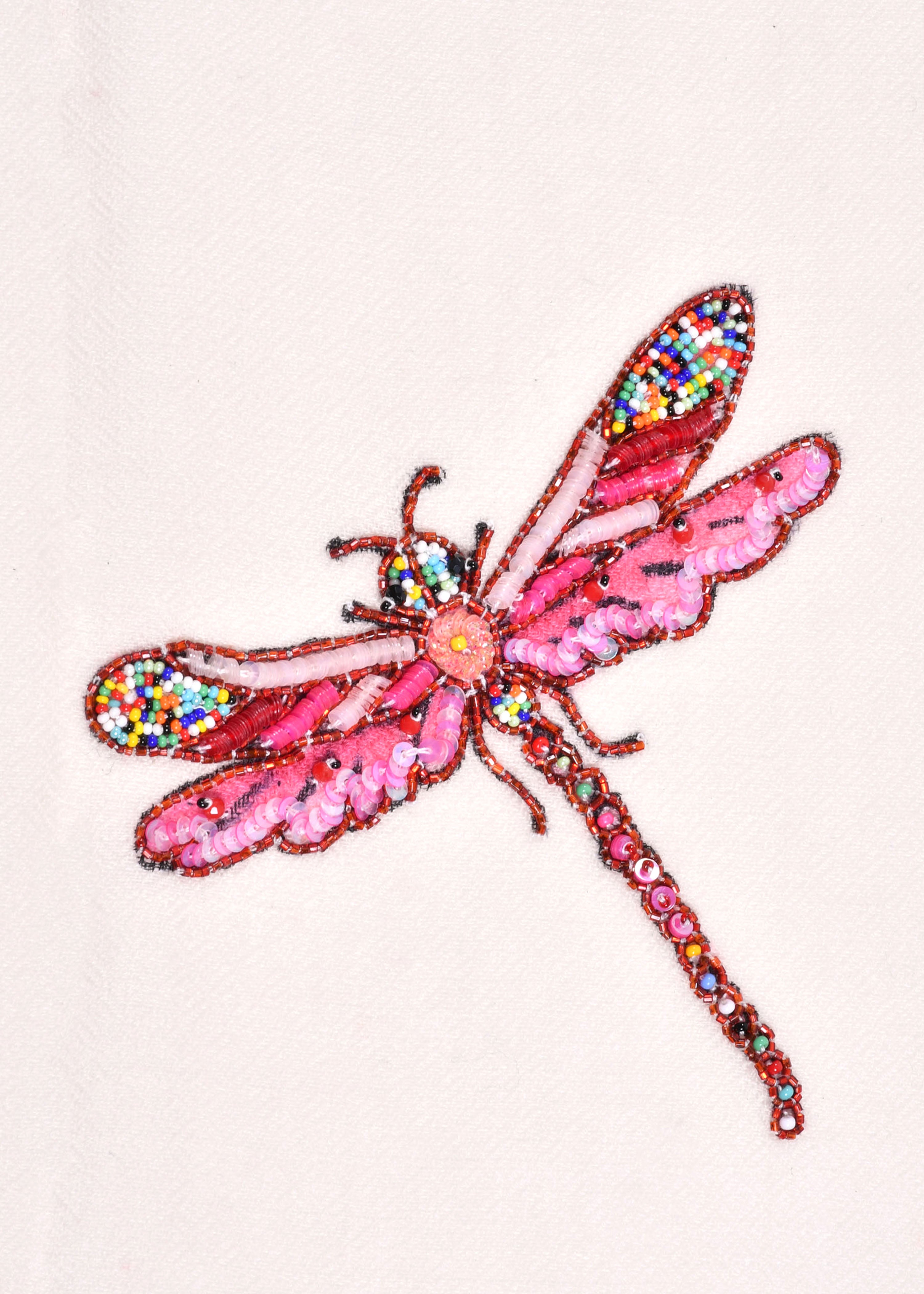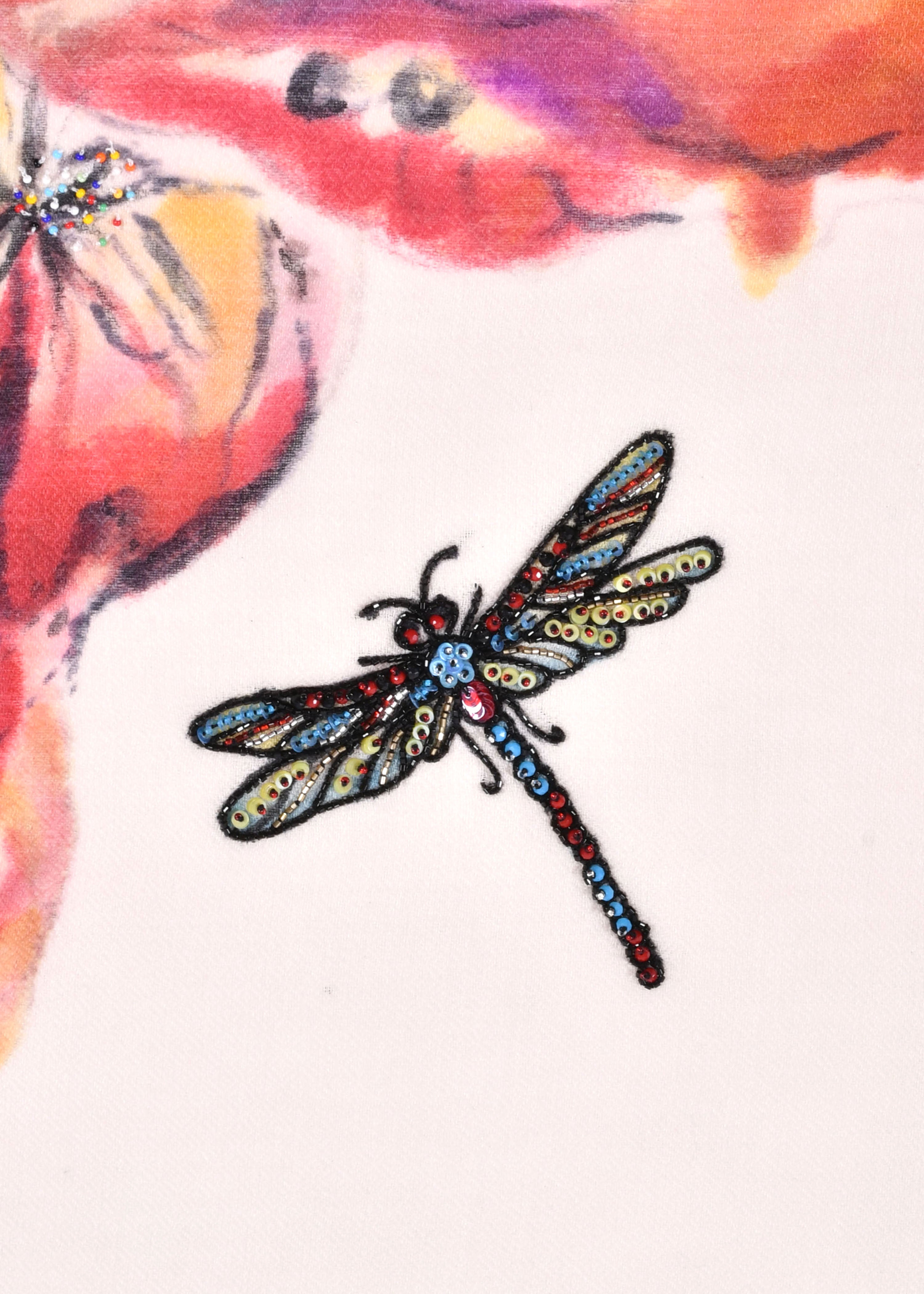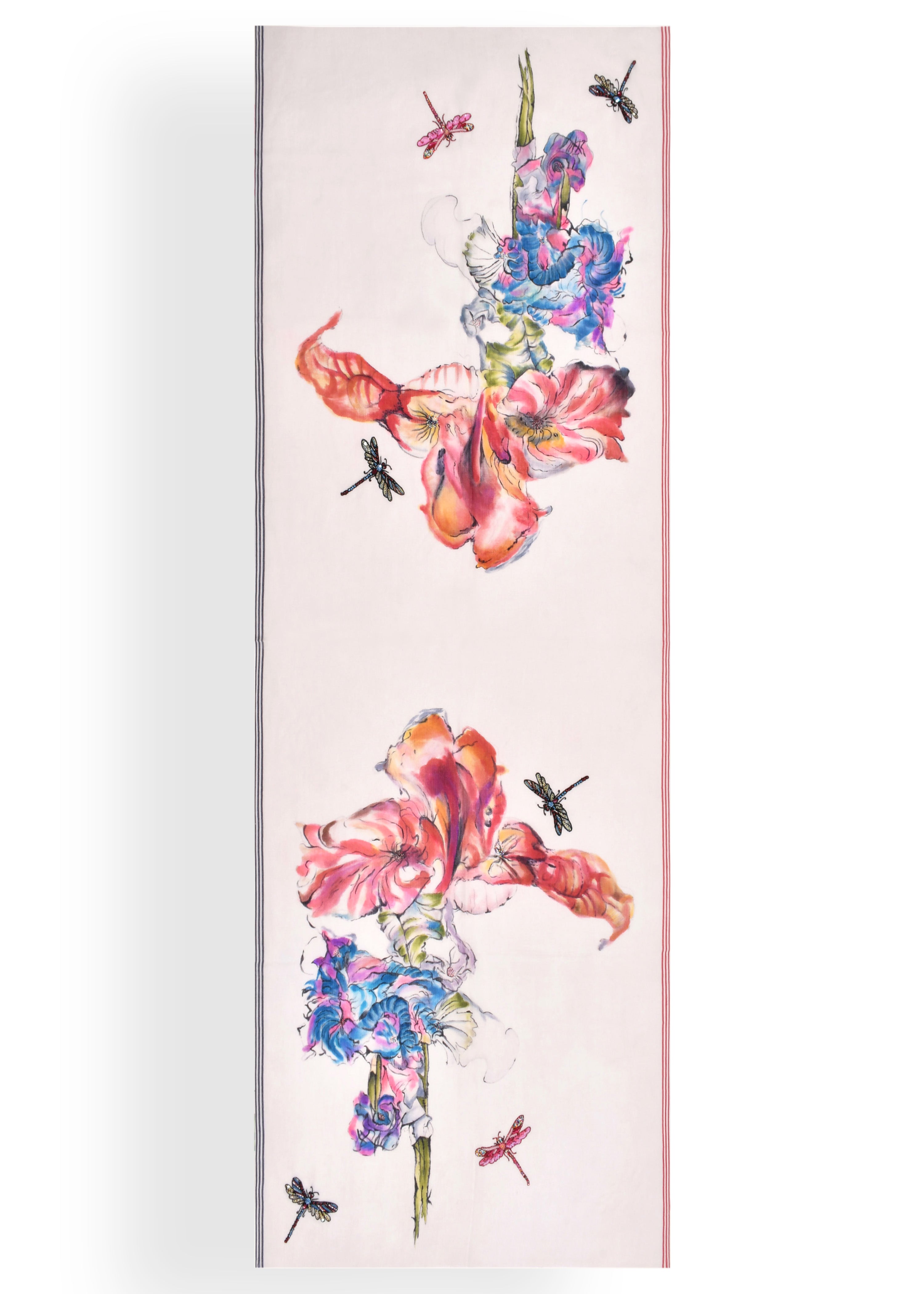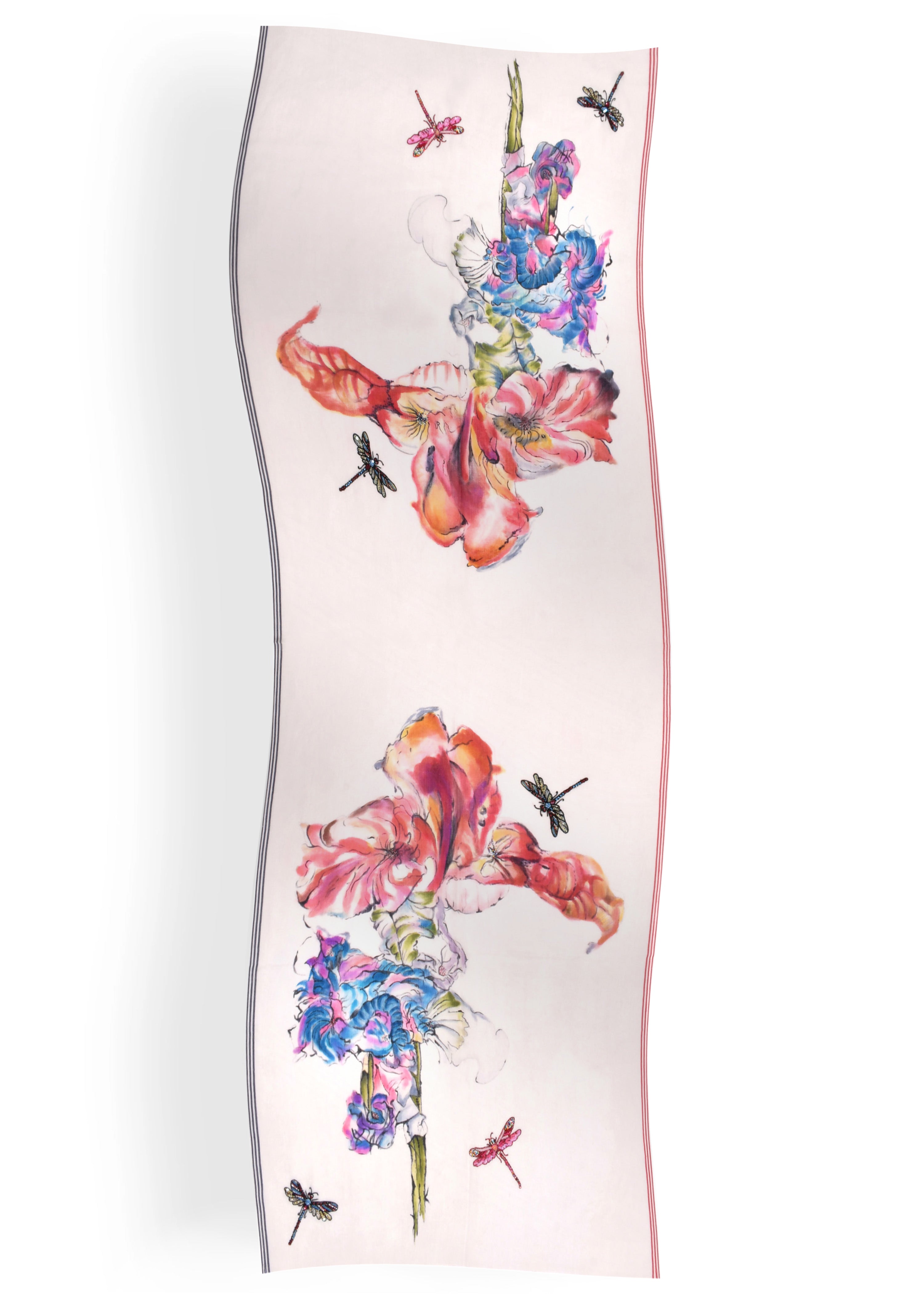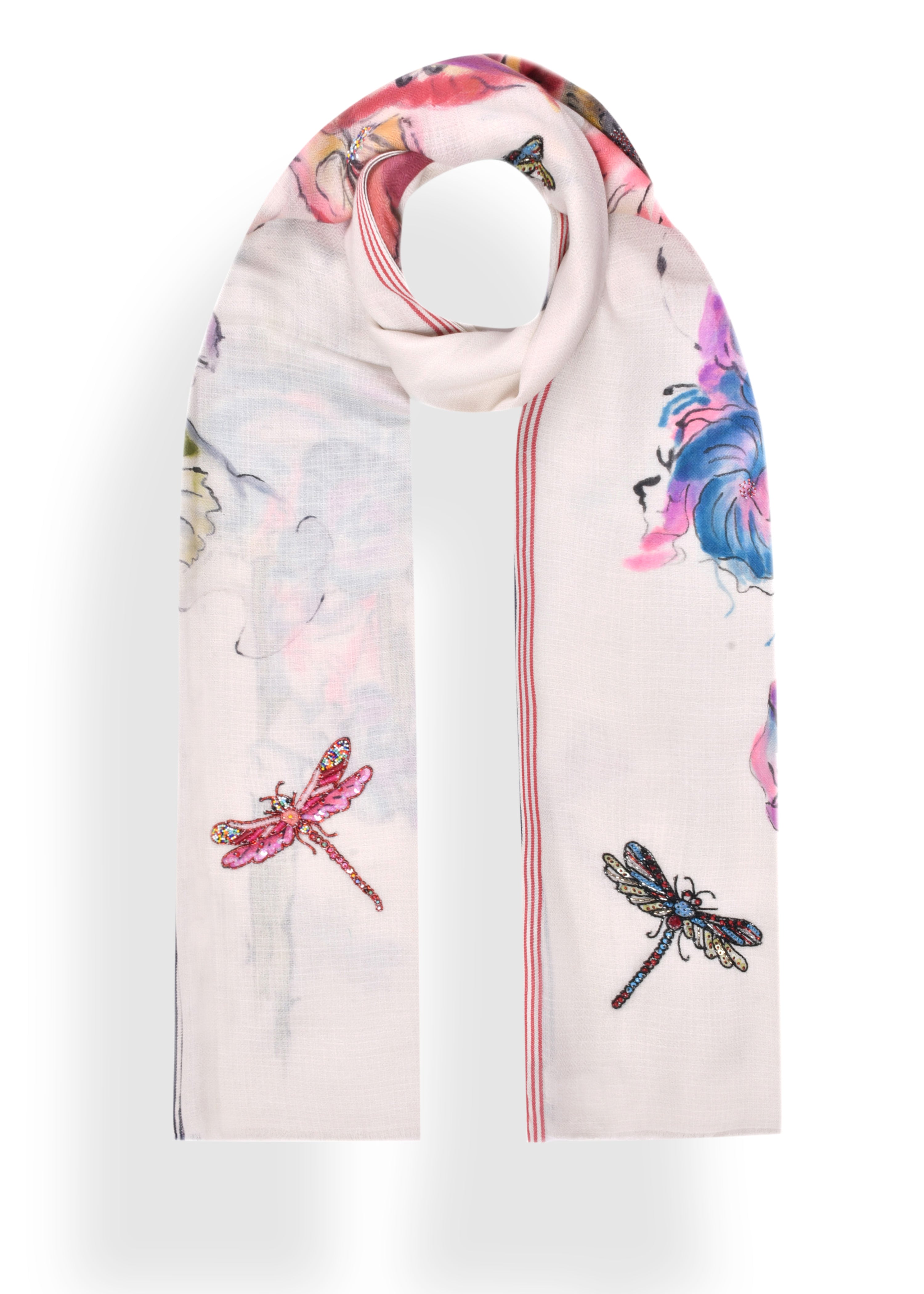 Hand painted and hand embroidered it. natural Merino wool wrap with a red and navy selvedge.