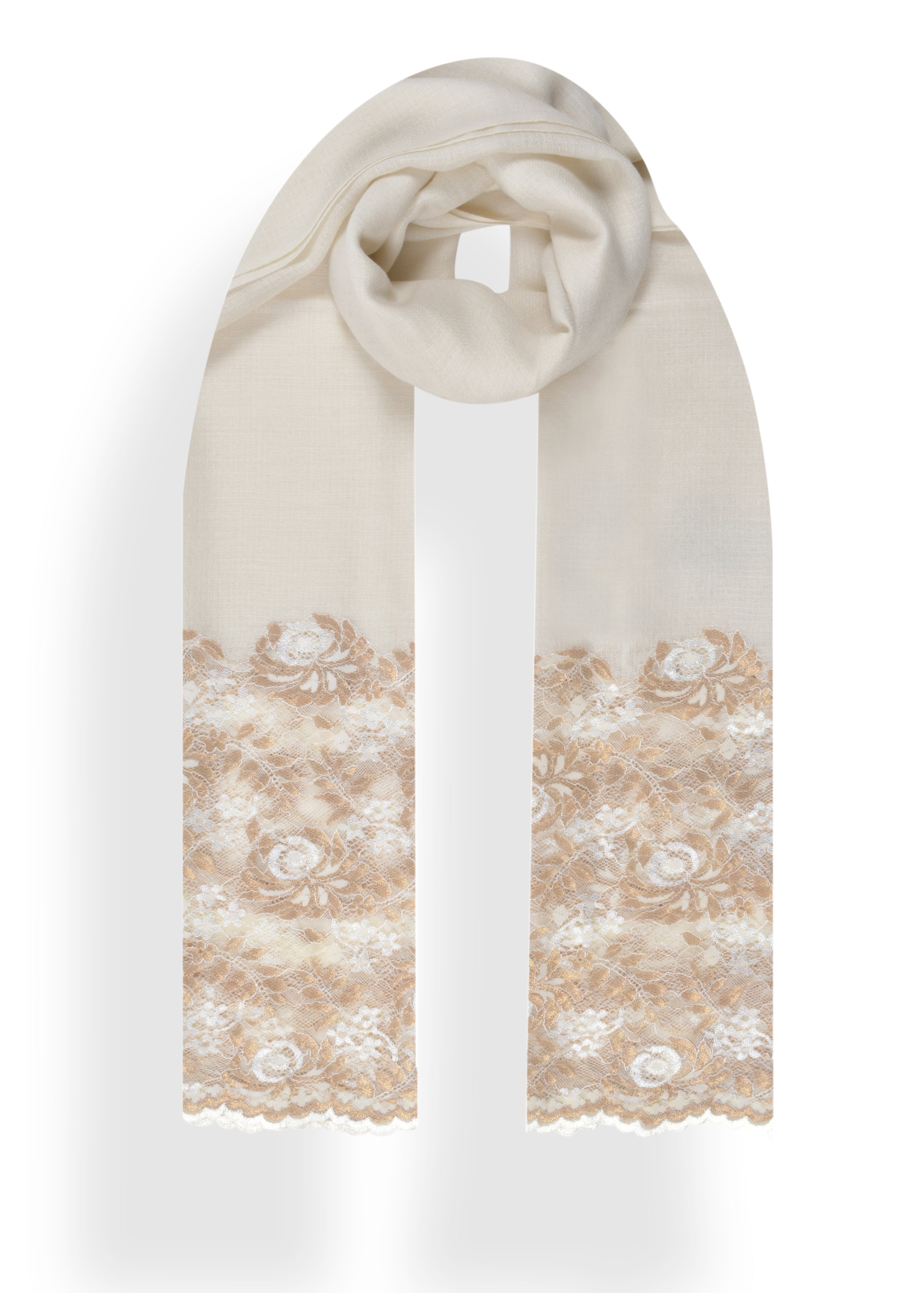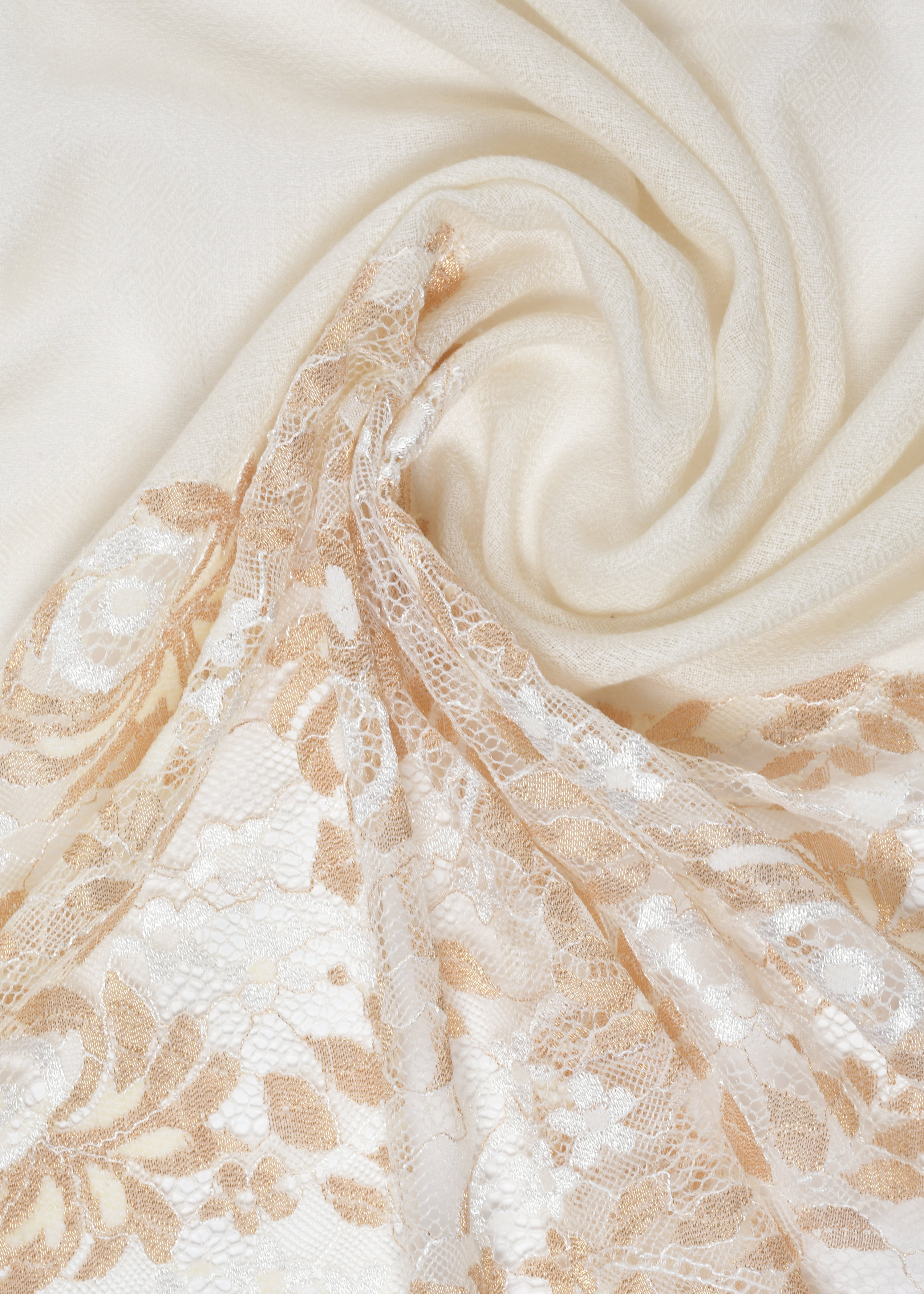 A Janavi Original, delicate embroidered metallic Chantilly lace and luxurious hand spun cashmere come delicately together.