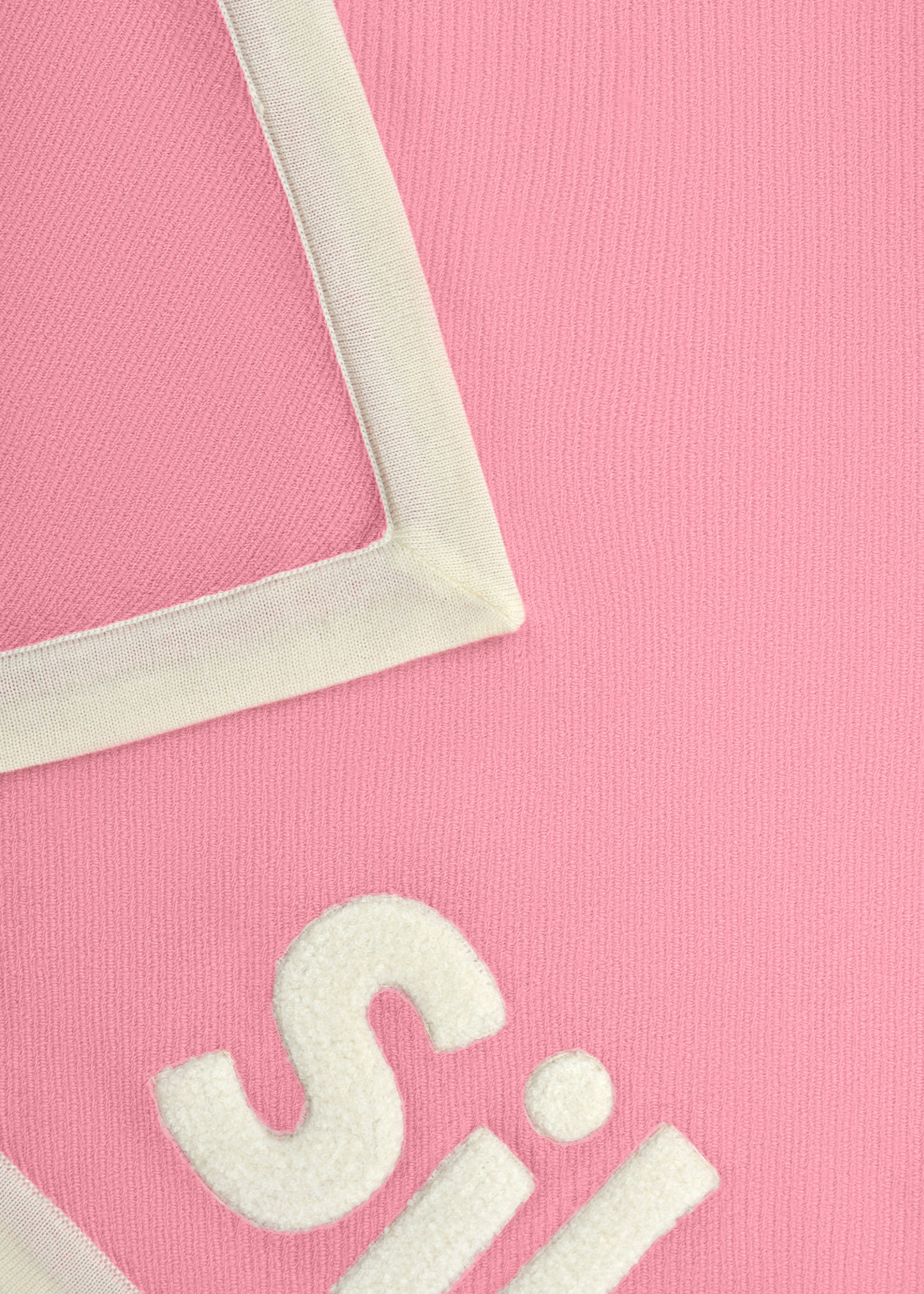 Embroidered Medium Twill weave blanket woven in pure merino on an base, with border.