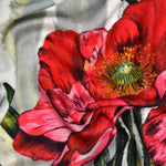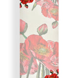 with vivid pink and red handprinted roses and a hand-poured Peony